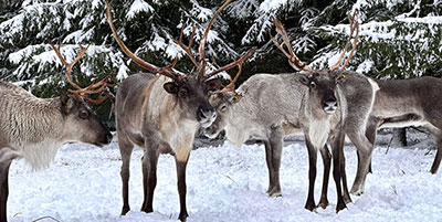 В декабре в ЭТНОМИР, проделав долгий путь, прибыли северные олени, сопровождаемые опытными каюрами, коренными жителями Ямала. В стае 8 самцов и 2 самки, весной ожидается пополнение в семействе.