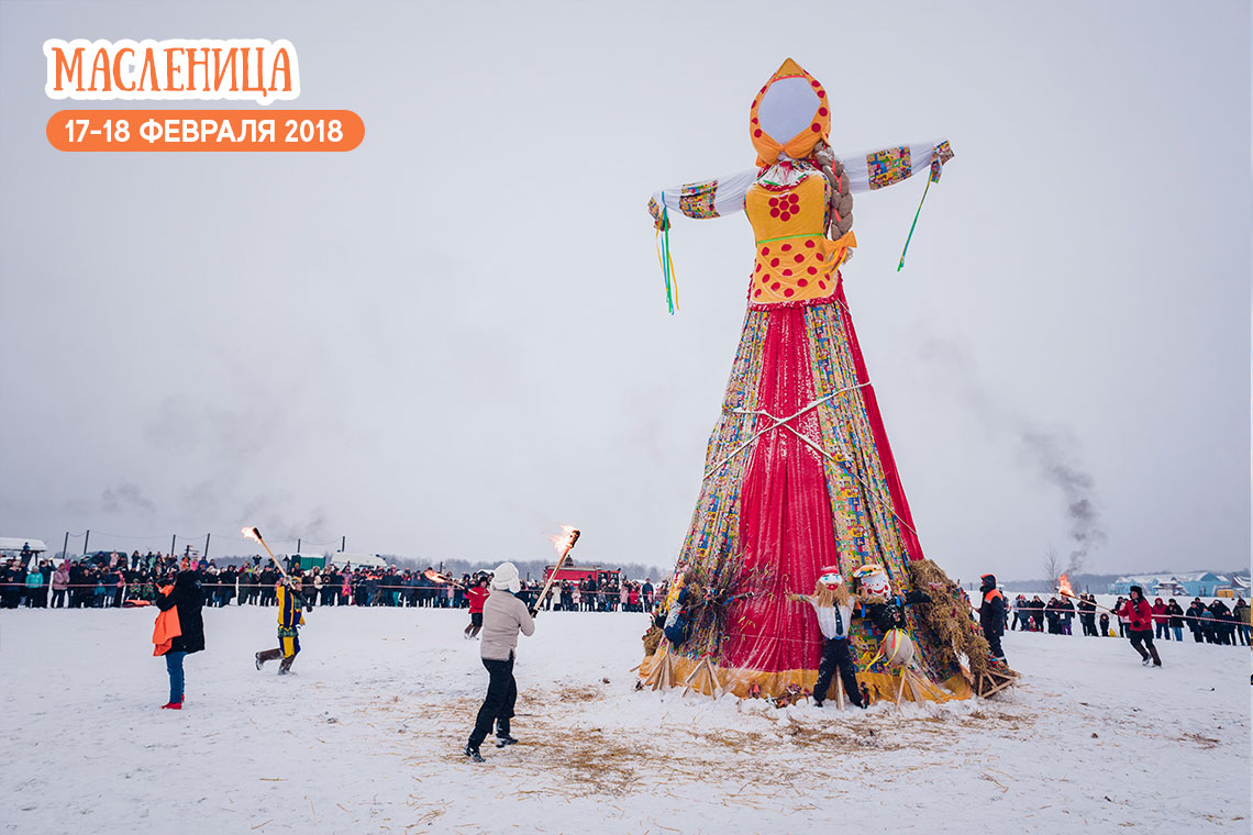 Девять тысяч гостей приехали в этнопарк, чтобы весело и задорно проводить зиму в русском стиле, с удалым размахом. Гигантская Масленица 15 метров высотой ярко горела – за версту видно было.