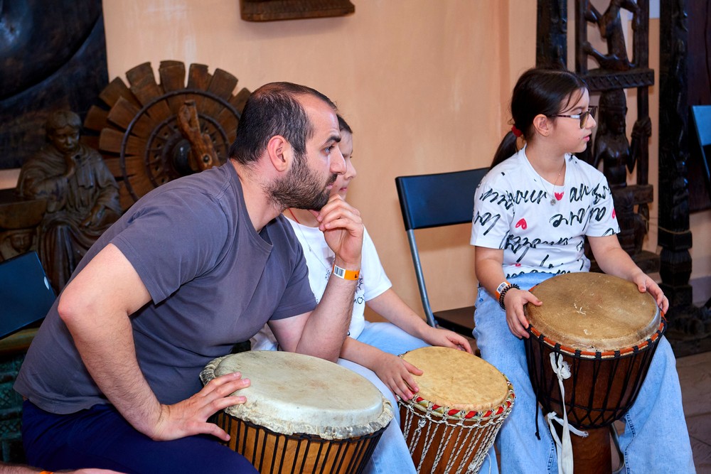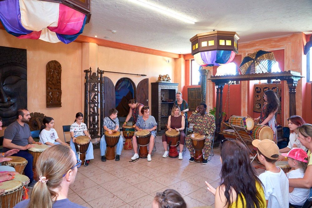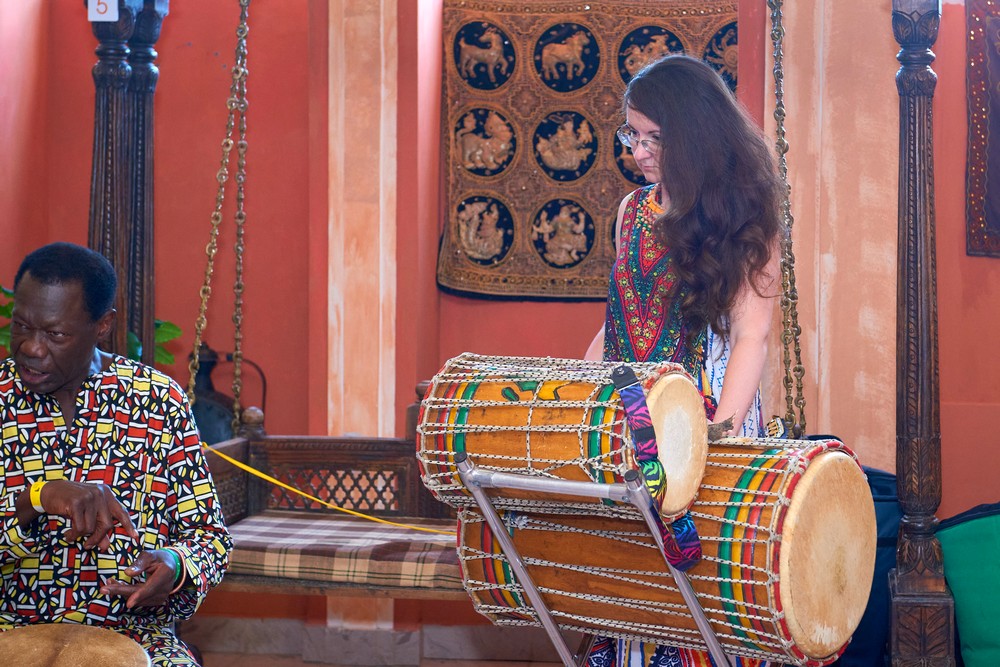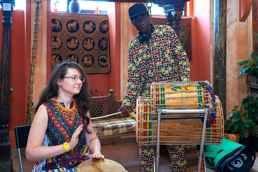 Два погожих денька подарило нам лето для традиционного музыкального праздника в ЭТНОМИРе. Как всегда, большой популярностью пользовались выступления и мастер-классы от ударно-инструментального ансамбля «Импульss’М» и школы игры на африканских барабанах Afrodrum. У Булатова Леонида учились играть на аккордеоне. «Академия звука» из Калуги провела вечер каверов и всех желающих усадила учиться играть на гитаре. Под кантри-композиции от Дмитрия Новокольского хотелось танцевать. А в сопровождении талантливых ведущих на мастер-классе по зумбе зажигали уже все – и получалось здорово!