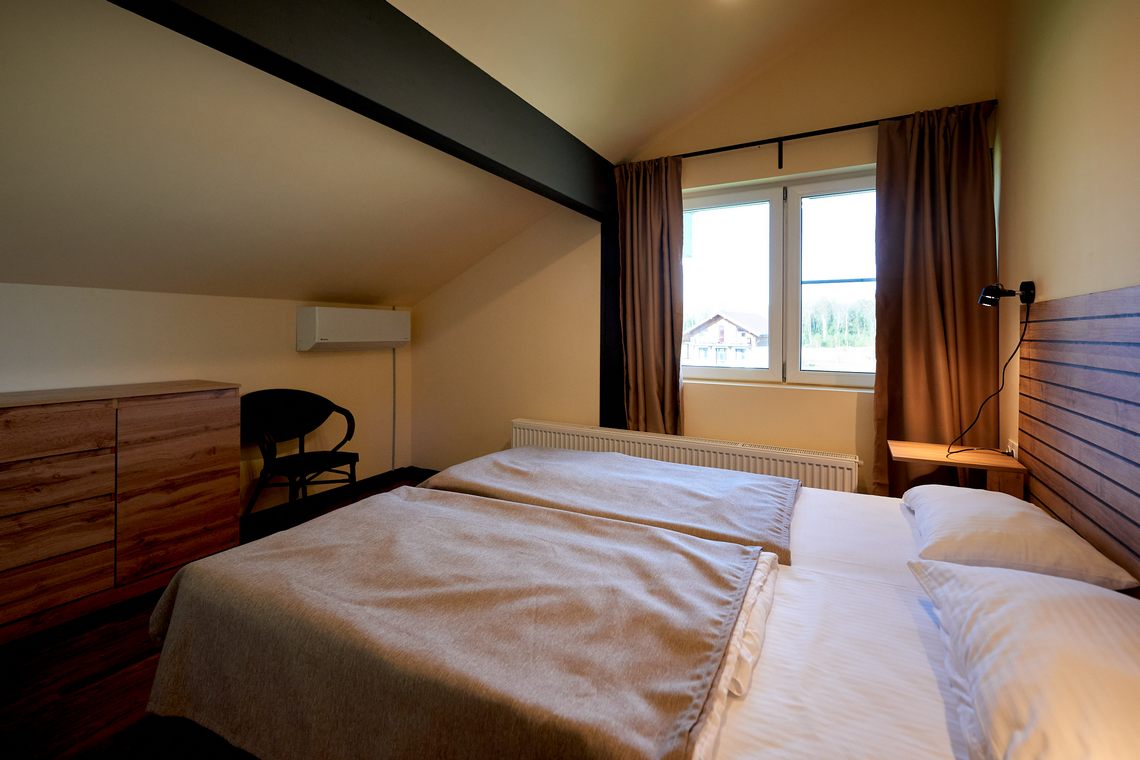 Комплектация номера: 2 односпальные кровати, тумбы, шкаф, телевизор.