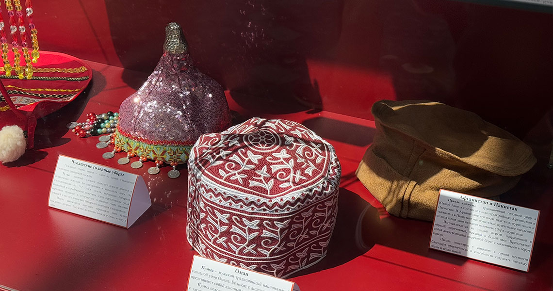 Коллекция головных уборов народов России, стран Азии и Востока передана в дар Культурно-образовательному центру «ЭТНОМИР» кандидатом медицинских наук, доцентом, путешественником Гажевой Анастасией Викторовной (г. Москва).