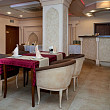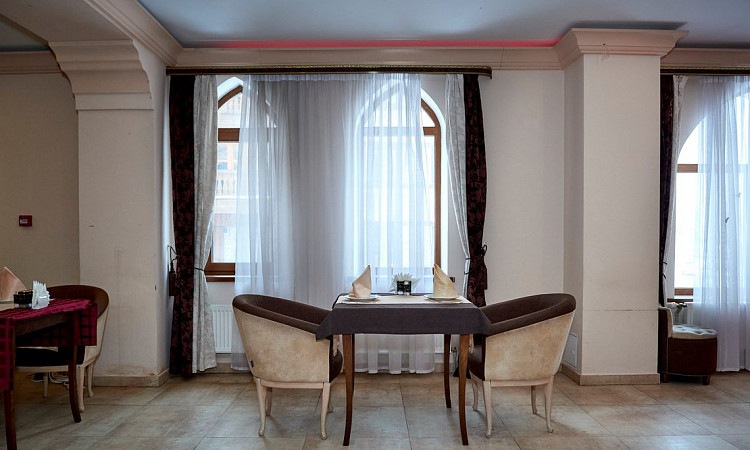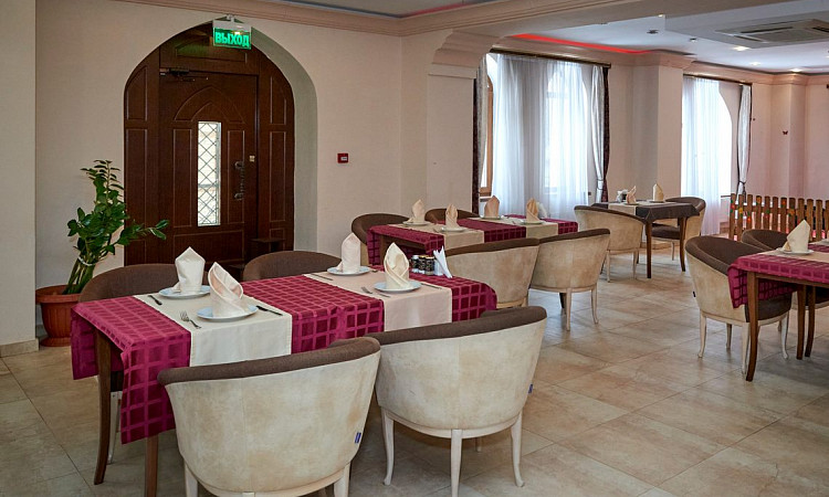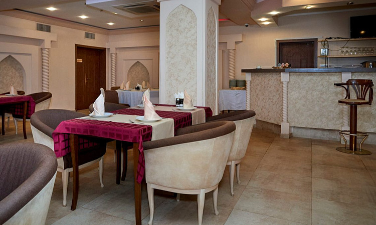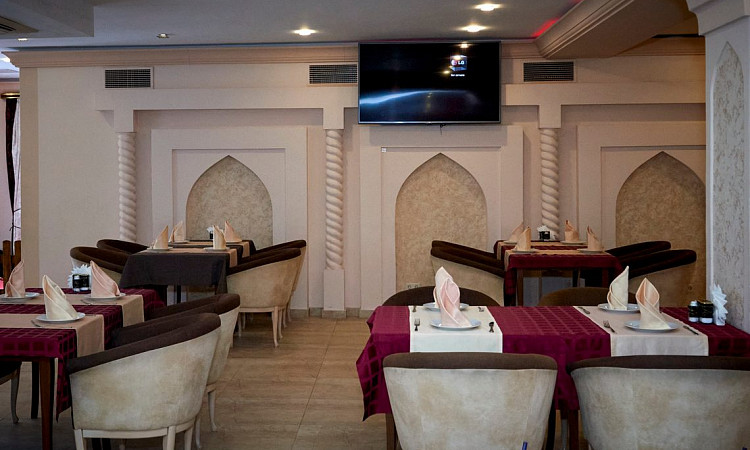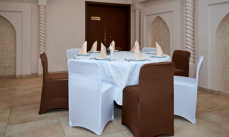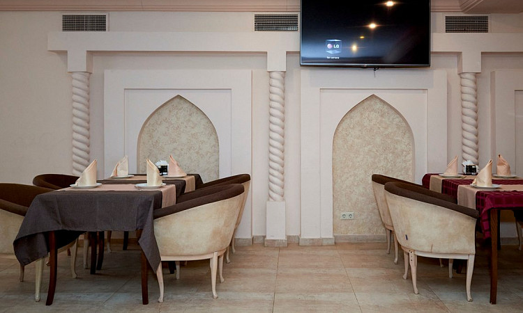 Завершённый вид атмосфере придаст сервировка – все блюда подаются на традиционной расписной посуде, изготовленной руками восточных мастеров. Чай дорогим гостям наливают в изящные пиалы, чтобы за неспешной беседой можно было насладиться вкусом и проникнуться восточными традициями.