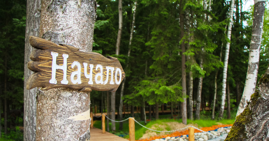 На обширной территории в 3 гектара расположены затейливые лесные тропы протяжённостью 870 метров, а также обзорная, смотровая и несколько интерактивных площадок.