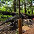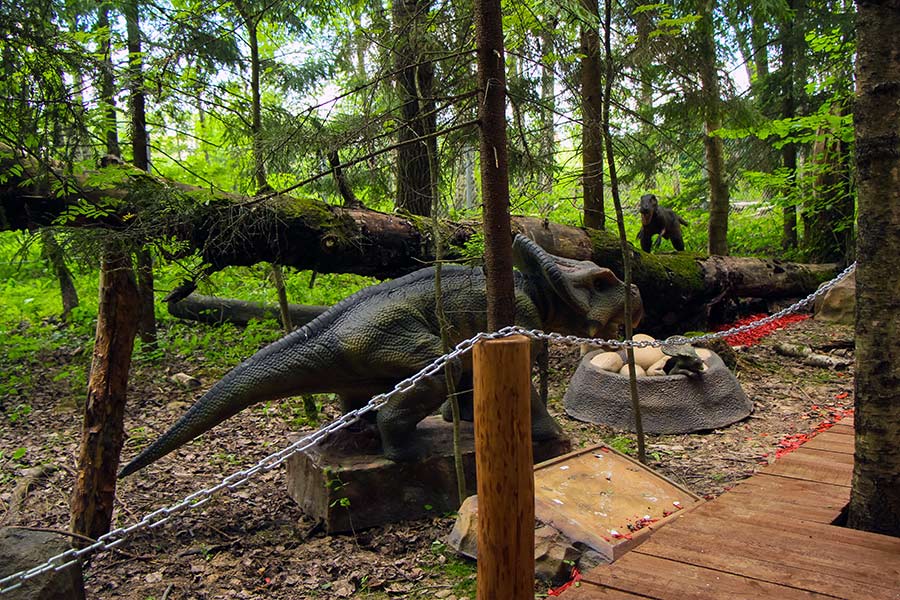 Динозавры в парке и правда совсем как живые. Благодаря аниматронным репродукциям наиболее известных ящеров - от птеродактиля до тиранозавра - прогулка по динопарку приобретает черты захватывающего приключения. Гостей не покидает ощущение, что они гуляют не в парке динозавров, а в настоящих джунглях мезозойской эры. Этому способствует и уникальный природный ландшафт, стилизованный под леса юрского периода.