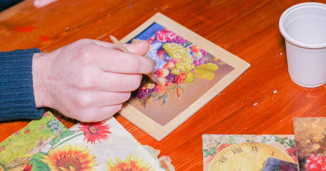 Мастер научит вас превращать простую вещь в произведение искусства с помощью техники декупажа – вырезания и наклеивания узоров на декорируемую поверхность.