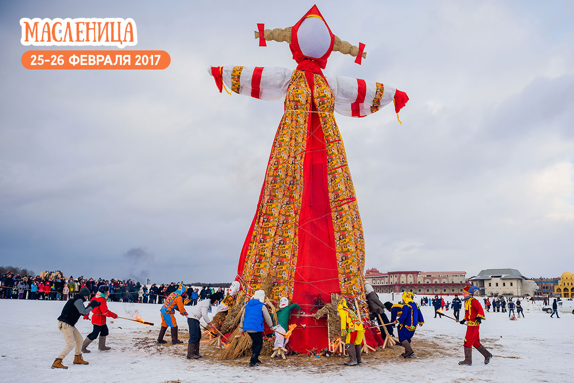 Ну а главную героиню – сударыню Масленицу – видно отовсюду. Этномирская Масленица по праву считается самой грандиозной! Настоятельно рекомендуем побывать на гуляниях, своими глазами увидеть обряд сжигания чучела и ощутить ценность мудрых обычаев предков!