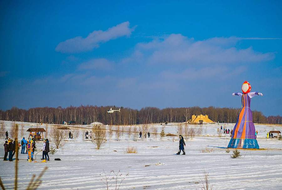 На праздник к славянской Масленице пожаловали гости со всего мира: болгарские Мартинички, украинская Марена, бельгийские Жилли, швейцарский снеговик Бодж, польская Мажанна, чешский Мясопуст, германский Нубель, индийская Холика… Чудеса да и только! Целый день открыта уникальная выставка масленичных чучел народов мира под куполом на площади Дружбы народов.