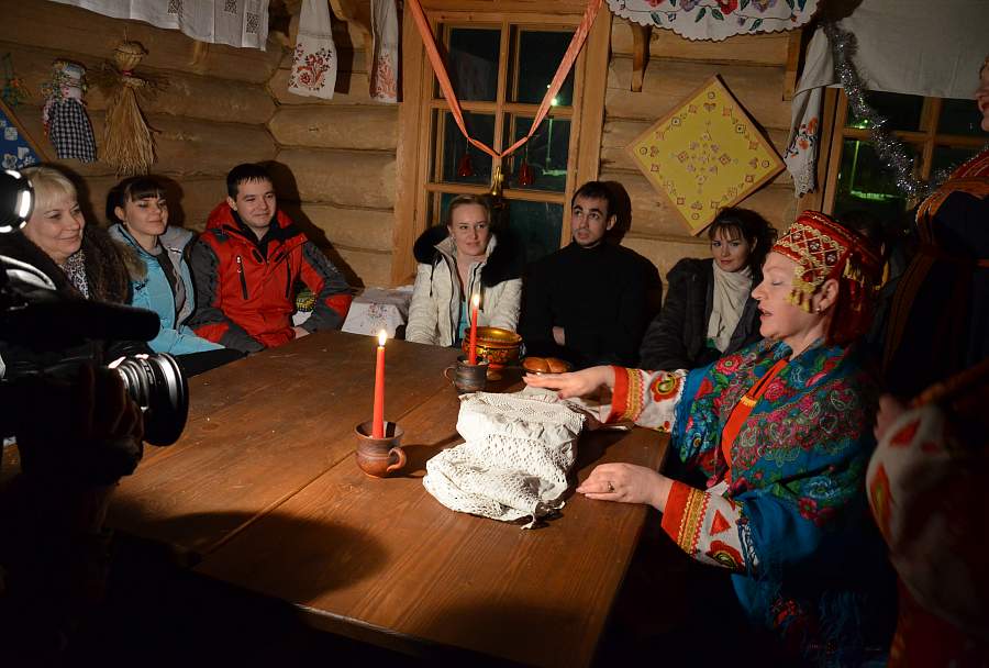 На посиделках в тёплой избе вы услышите увлекательный рассказ о зимних вечёрках – времени, когда и пряли, и вышивали, и песни пели, и кукол делали. Узнаем, как гадали в Святочные вечера, как готовили щедрую кутью на Меланки, как на Старый Новый год принято щедровать и посевать.