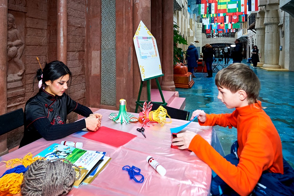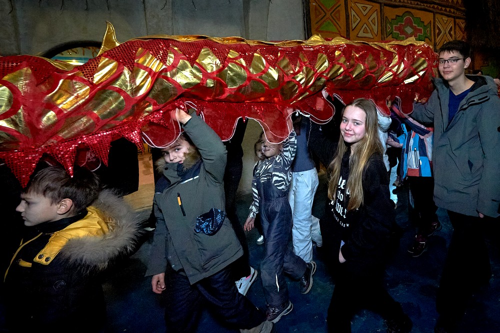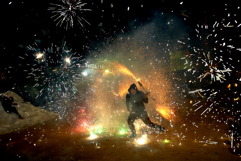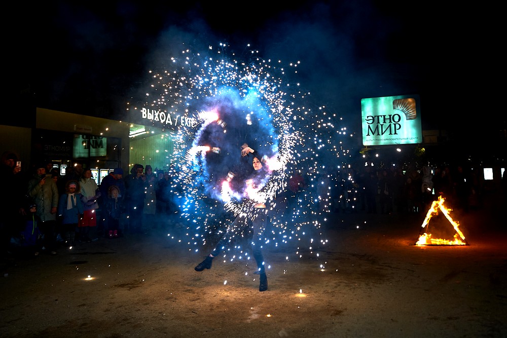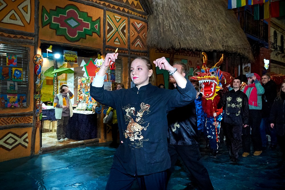 Китайский Новый год отмечается по лунному календарю. И одной новогодней ночью дело не обходится – официально праздник длится с 22 по 27 января. Чуньцзе – дословно переводится как «Праздник Весны» – в этнографическом парке-музее «ЭТНОМИР» отмечался 21-22 января. В наших широтах это разгар зимы, конечно же. Парк украсился традиционными красными фонариками, прилетал дракон, мы делали карнавальные маски из фетра, рисовали иероглифы счастья, практиковались в цигуне, играли в маджонг и ним. Танцевали и загадывали желания. А субботний вечер запомнился огненным шоу.
