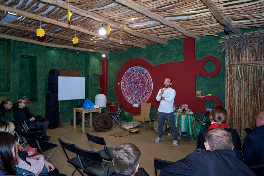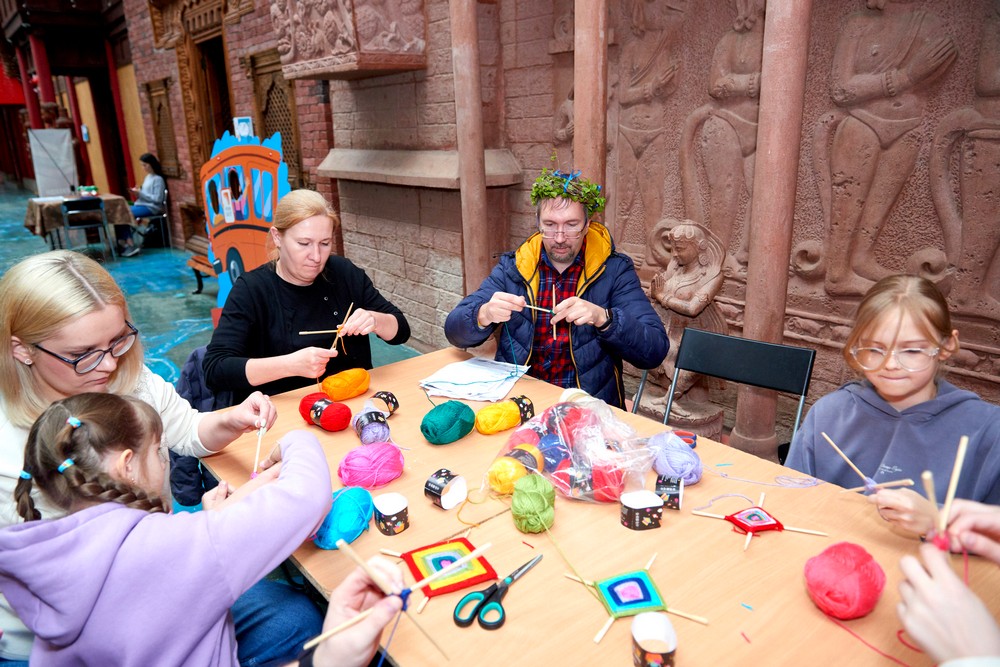 Большие выходные – простор для реализации всего задуманного, отдыха и разнообразнейшего досуга в этнопарке. Для этих весенних дней мы собрали в калейдоскоп яркие выступления, творческие мастер-классы, игры, обряды и много чего ещё… И венки с лаптями плели, и на гвоздях стояли, и с ребятами из Боливии в игры играли. Словом, нет, погоде не удалось отобрать у нас праздник!