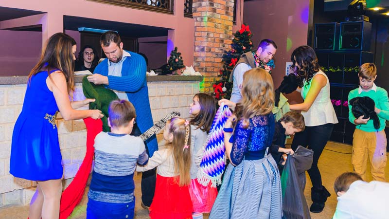 Веселые конкурсы и необычные подарки, выступление артистов и шумные хороводы вокруг красавицы-ёлки, изысканный банкет и, разумеется, поздравление гостей от Деда Мороза и Снегурочки - в ЭТНОМИРе прошел волшебный и сказочный новогодний праздник для взрослых и детей!