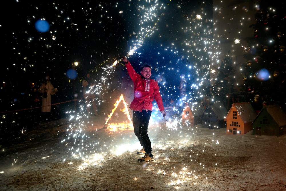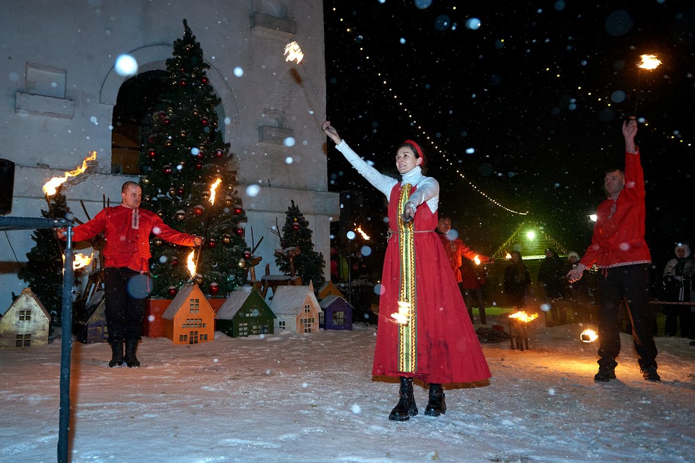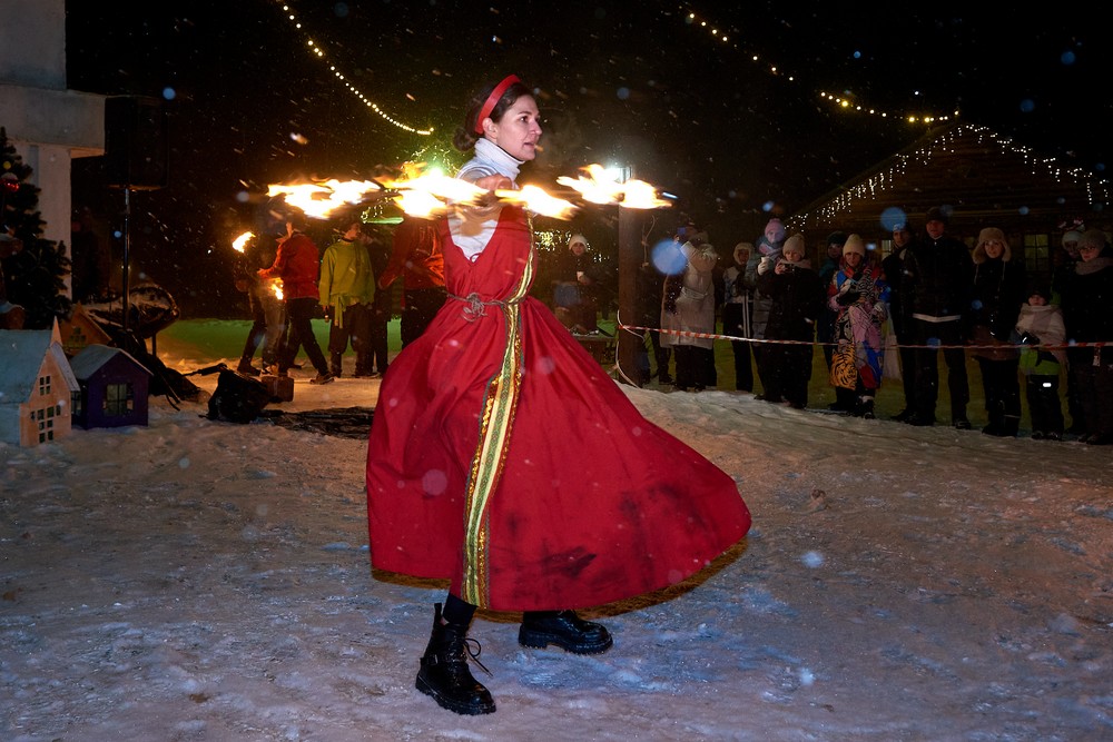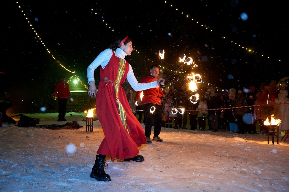 В течение всего дня гости этнопарка наслаждались зимними прогулками и интерактивными экскурсиями, встречались с новогодними волшебниками, мастерили праздничные сувениры... А вечером был банкет и уличная программа около главной ёлки, фаер-шоу и большой костёр с угощениями!
