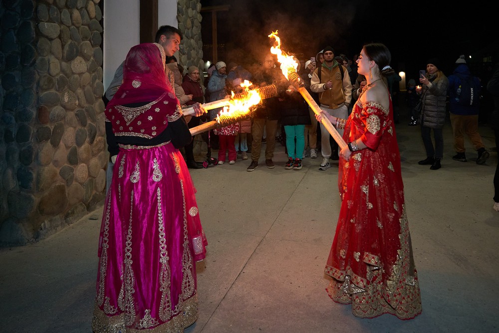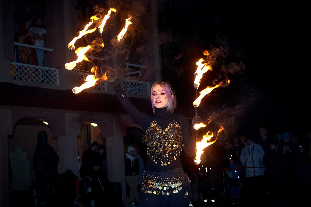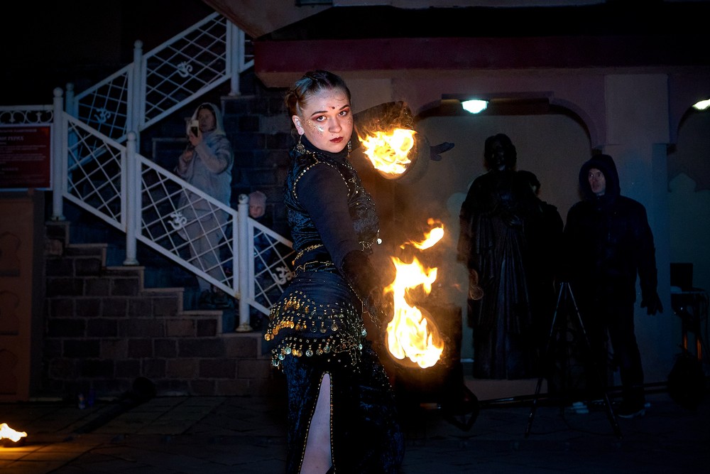Ноябрьские выходные были полны ярких красок, света и огней. На традиционном для ЭТНОМИРа празднике «Дивали» выступали артисты «Лила Прем» и танцор из Индии Гуру Ашиша Катхак. Коллектив «ДК Коломна» проводили занятия по йоге и музыкотерапии, мастер-классы по игре на индийских музыкальных инструментах. Гости парка встретились с Хануманом, поучаствовали в индийской свадьбе, постигли магнетическую красоту мехенди… Субботним вечером после шествия с факелами на площади Культурного центра Индии зажигали несравненные фаерщики Lando's Band.