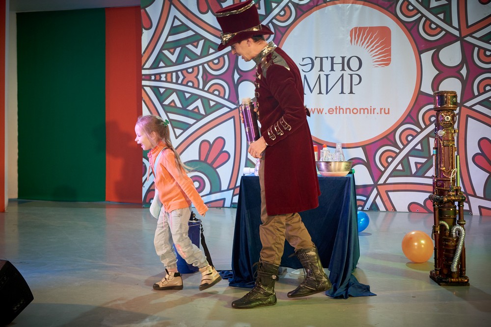 Так получилось, что праздничные выходные, посвящённые тематике комиксов и аниме, мифов и легенд, совпали с кульминацией «Мультканикул в ЭТНОМИРе». И это было здорово! Яркие герои любимых мультиков и встреча с их создателями, умные клоуны «Два капучино» и магическое криошоу, настольные и уличные игры, мастер-классы, на которых можно было сделать руны или приготовить оладушки… Особая благодарность за атмосферу нашим артистам – танцевальному коллективу «Эдельвейс», дуэту «Кристиан и Чибала», группе Studmusicclub, исполнившим песни из популярных сериалов и игр.
