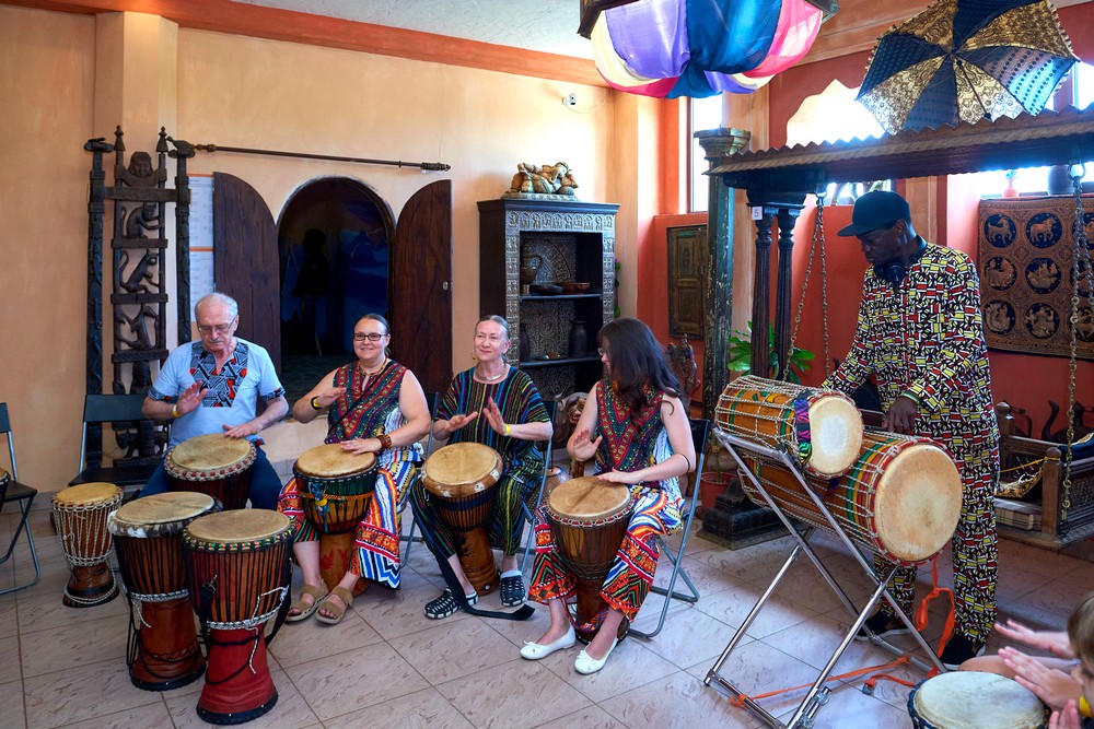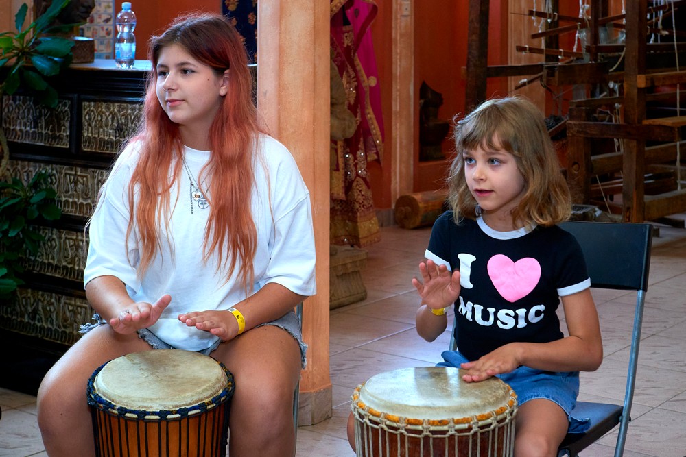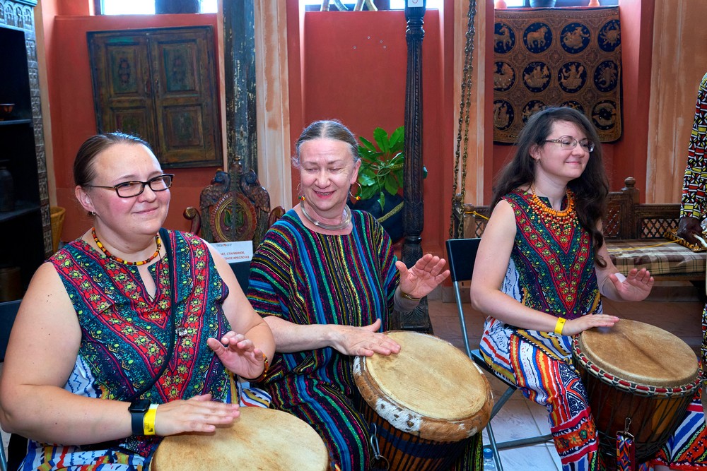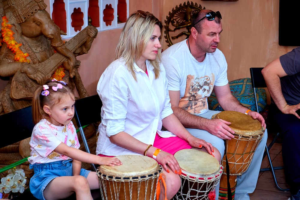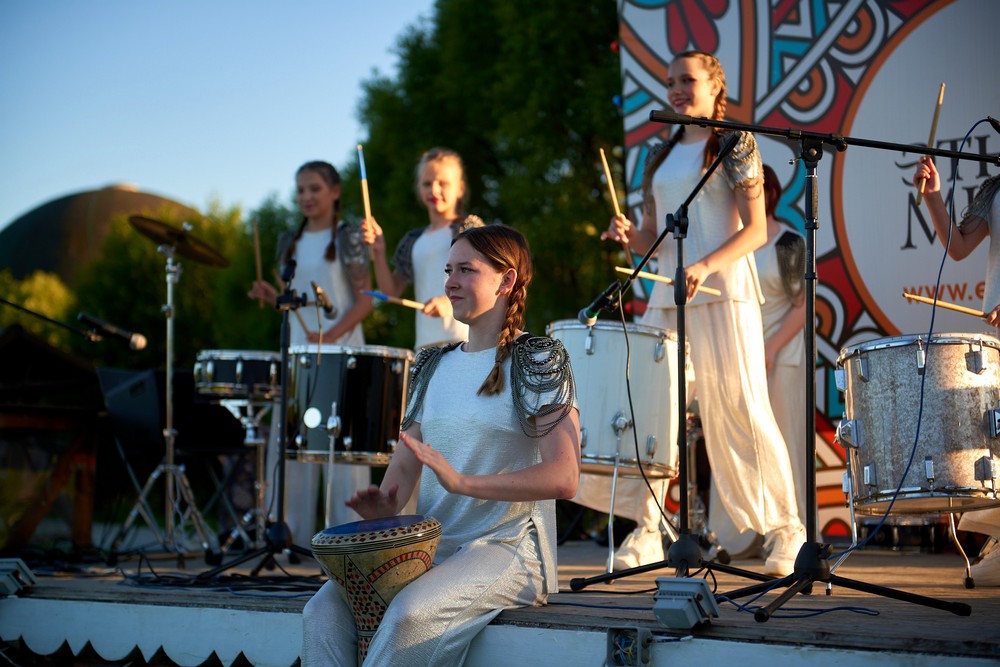 Два погожих денька подарило нам лето для традиционного музыкального праздника в ЭТНОМИРе. Как всегда, большой популярностью пользовались выступления и мастер-классы от ударно-инструментального ансамбля «Импульss’М» и школы игры на африканских барабанах Afrodrum. У Булатова Леонида учились играть на аккордеоне. «Академия звука» из Калуги провела вечер каверов и всех желающих усадила учиться играть на гитаре. Под кантри-композиции от Дмитрия Новокольского хотелось танцевать. А в сопровождении талантливых ведущих на мастер-классе по зумбе зажигали уже все – и получалось здорово!