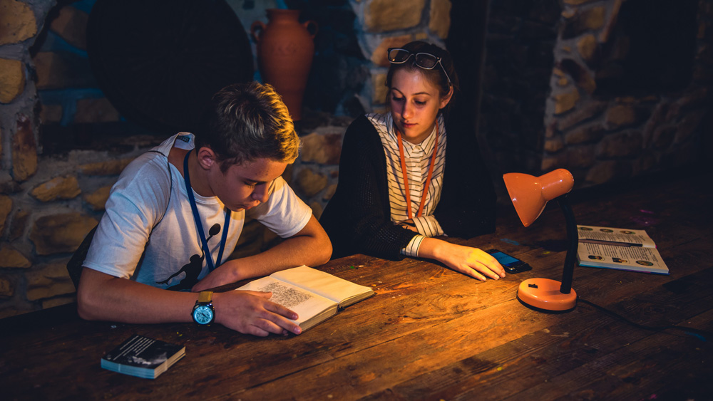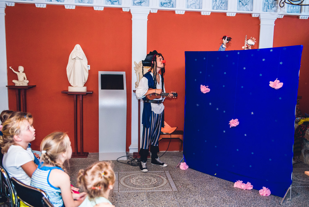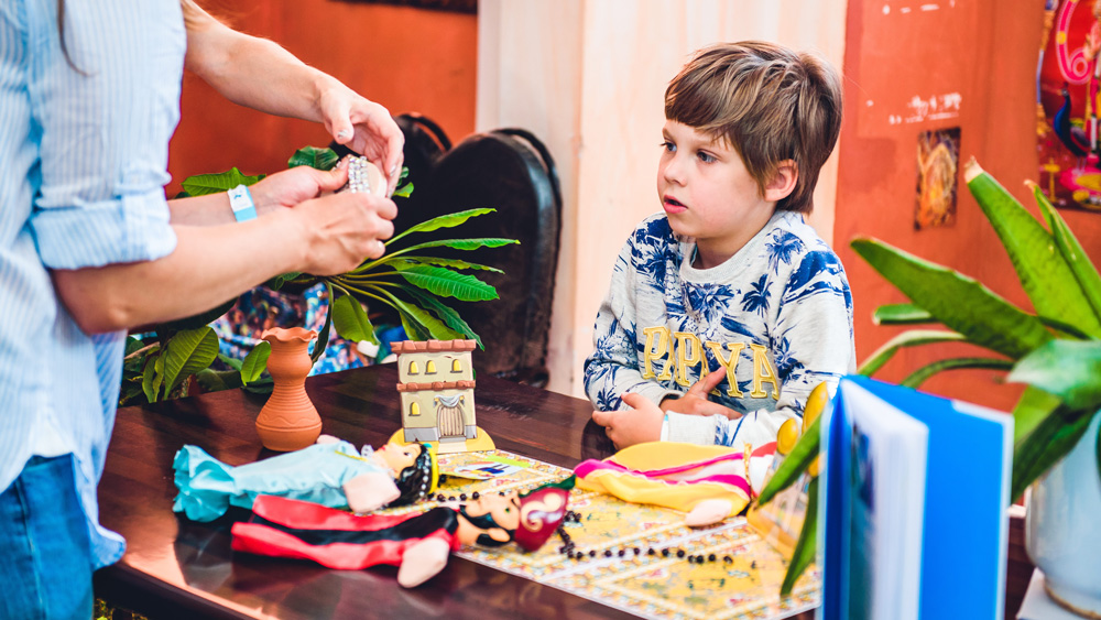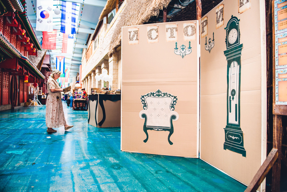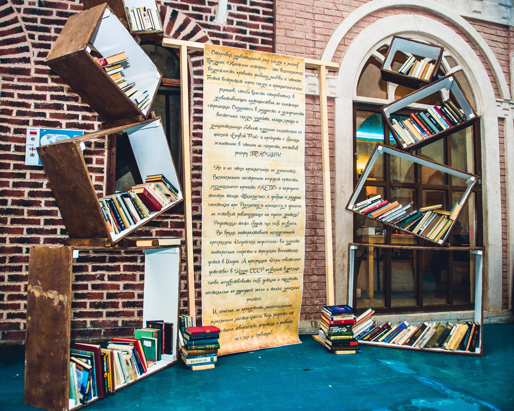 Читальня под открытым небом, яркие книжные арт-инсталляции, интерактивные программы от школы английского языка «English First», презентации книг, кукольные спектакли, мюзикл о приключениях русалочки от Народного театра танца «Щелкунчик», весёлый квест «Собери АБВГДейку в школу», литературно-музыкальный вечер с ансамблем «Bellissimo», кинопоказ под открытым небом и многие, многие другие приключения радовали гостей ЭТНОМИРа на празднике «Книжные истории».