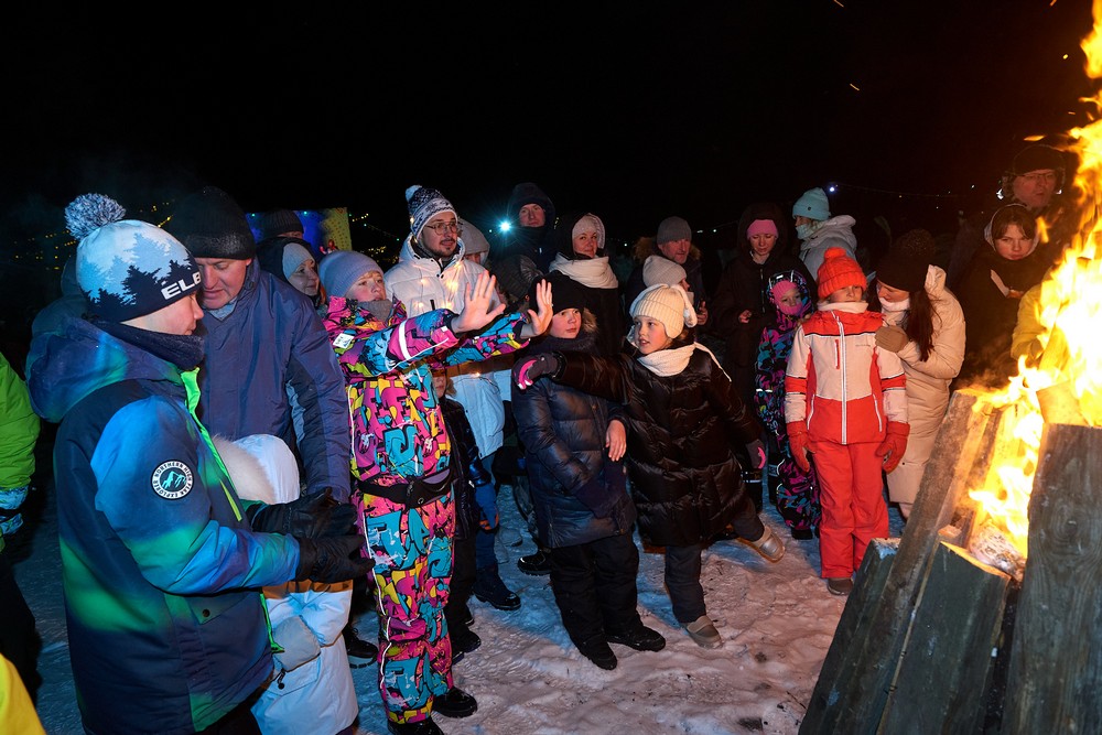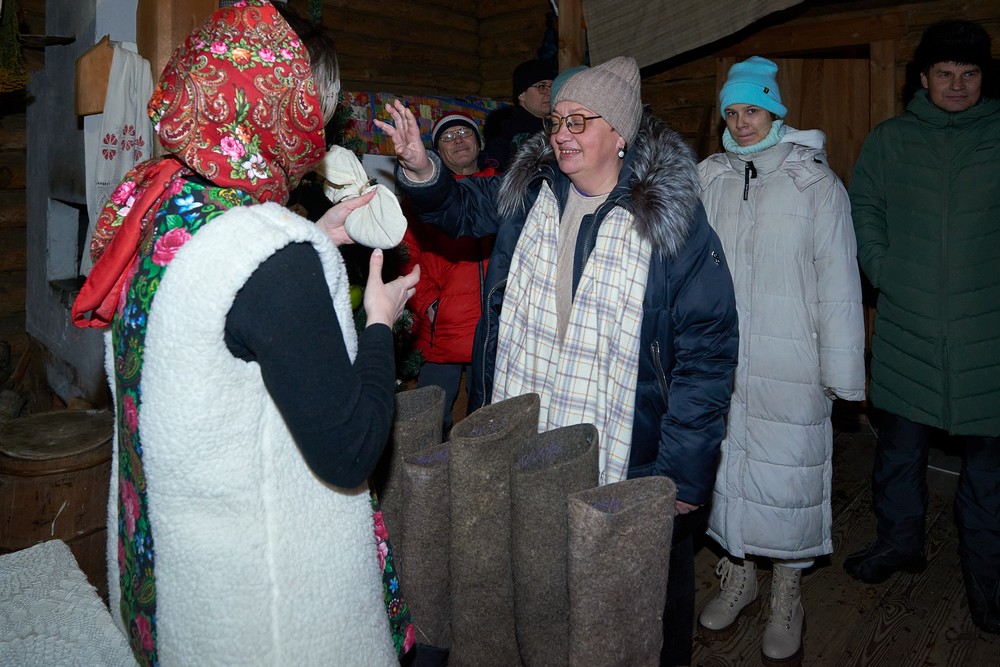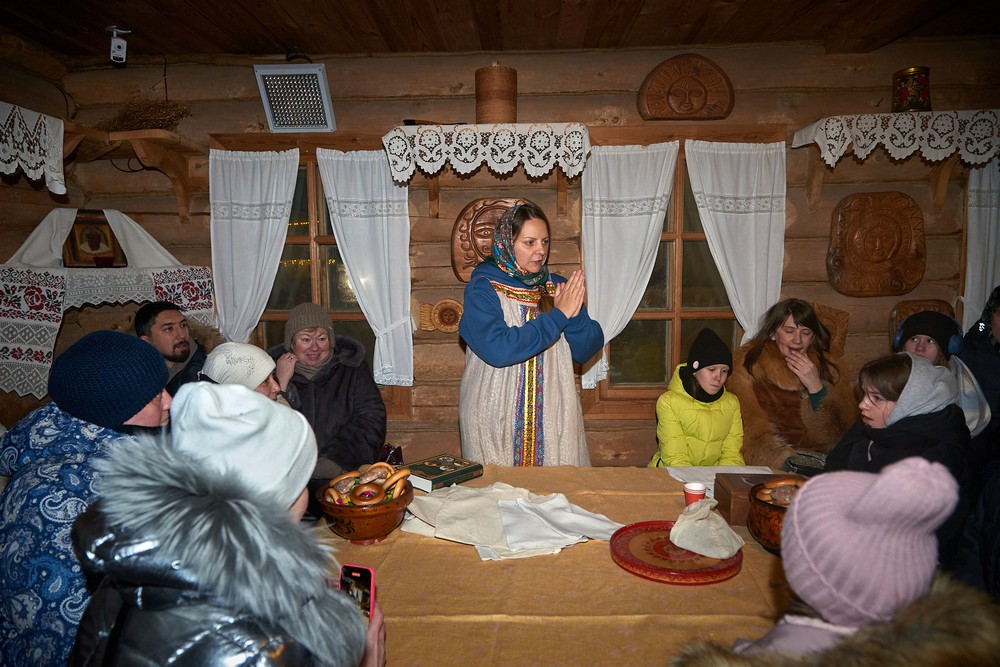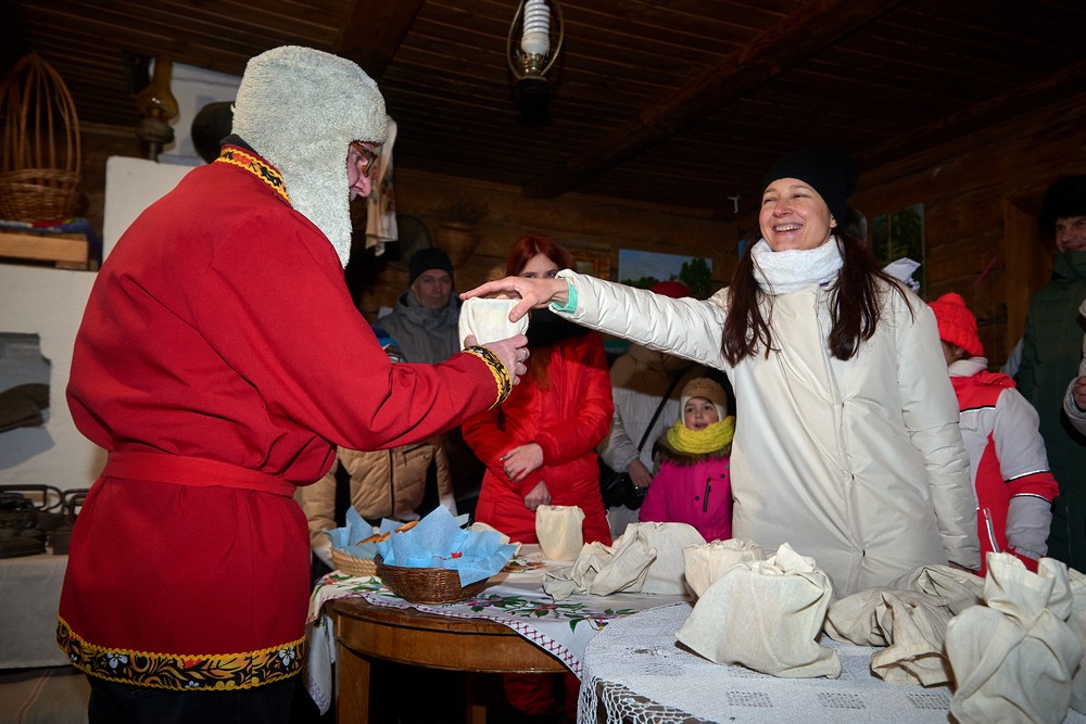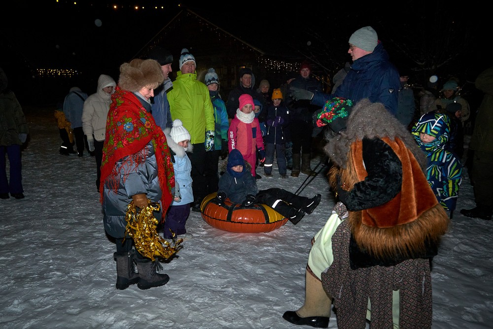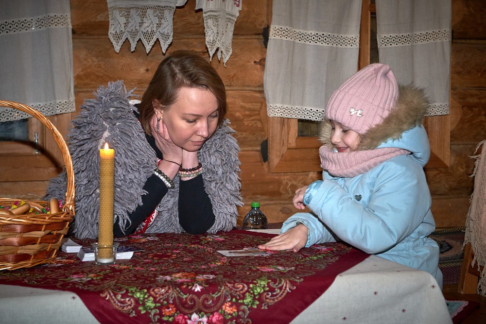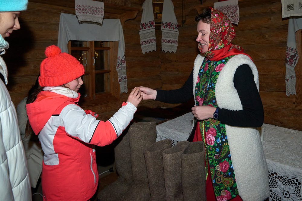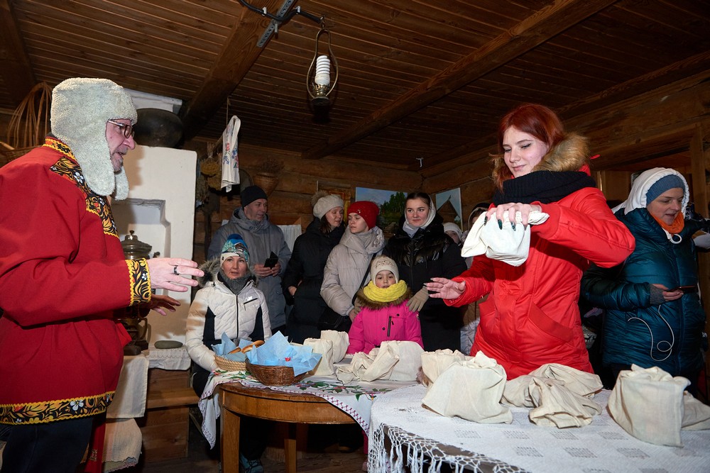 Морозные январские дни начала года не испугали нас и не нарушили наши праздничные планы – вечерние гуляния около печи собрали самых активных гостей этнопарка. В 22:30 на Малой сцене коллектив группы «На все времена» выступил с программой всем хорошо знакомых, заводных, прекрасных песен. Жаркий костёр согрел всех от мала до велика, так что плясать и подпевать артистам было в радость. А после мы отправились в избы – гадать на фасоли и муке, разгадывать восковые узоры, тянуть судьбоносные предметы из валенок, читать неслучайные строки в волшебных книгах и заглядывать в карты. Согрелись и оттаяли, была возможность в сенях потолковать и на печи полежать.