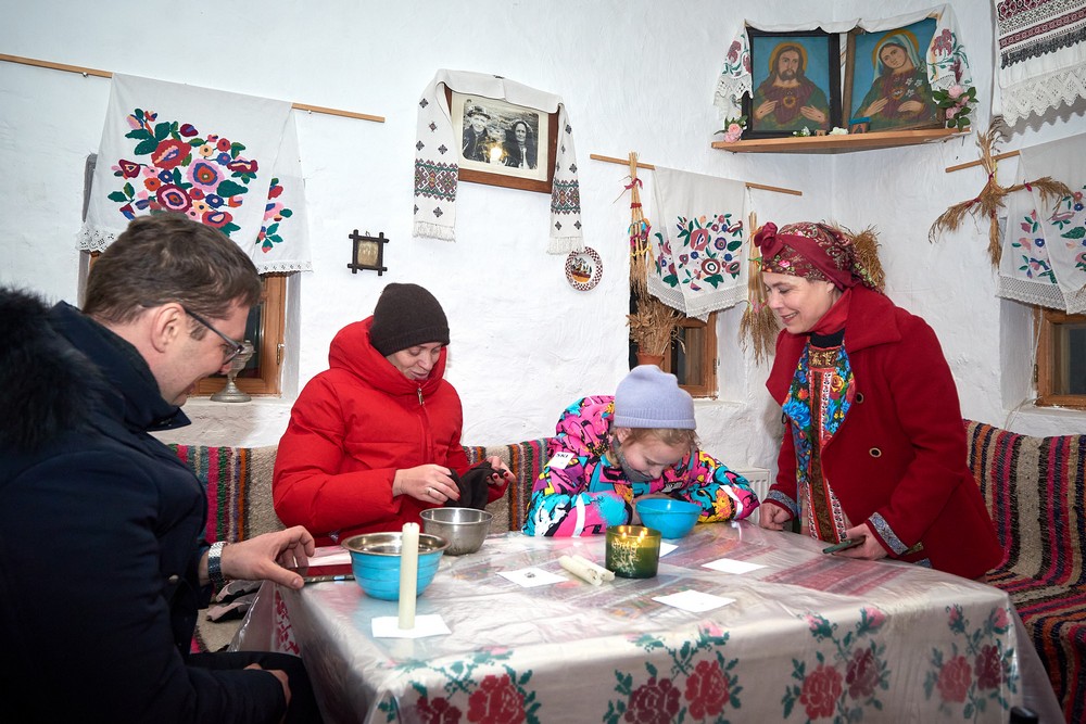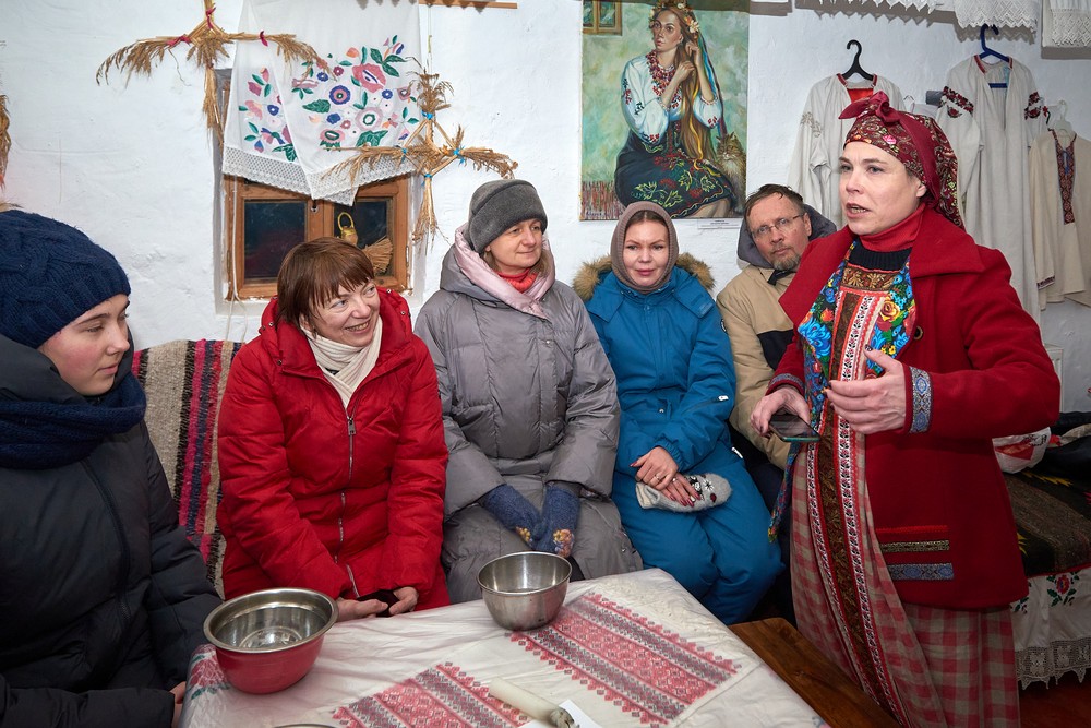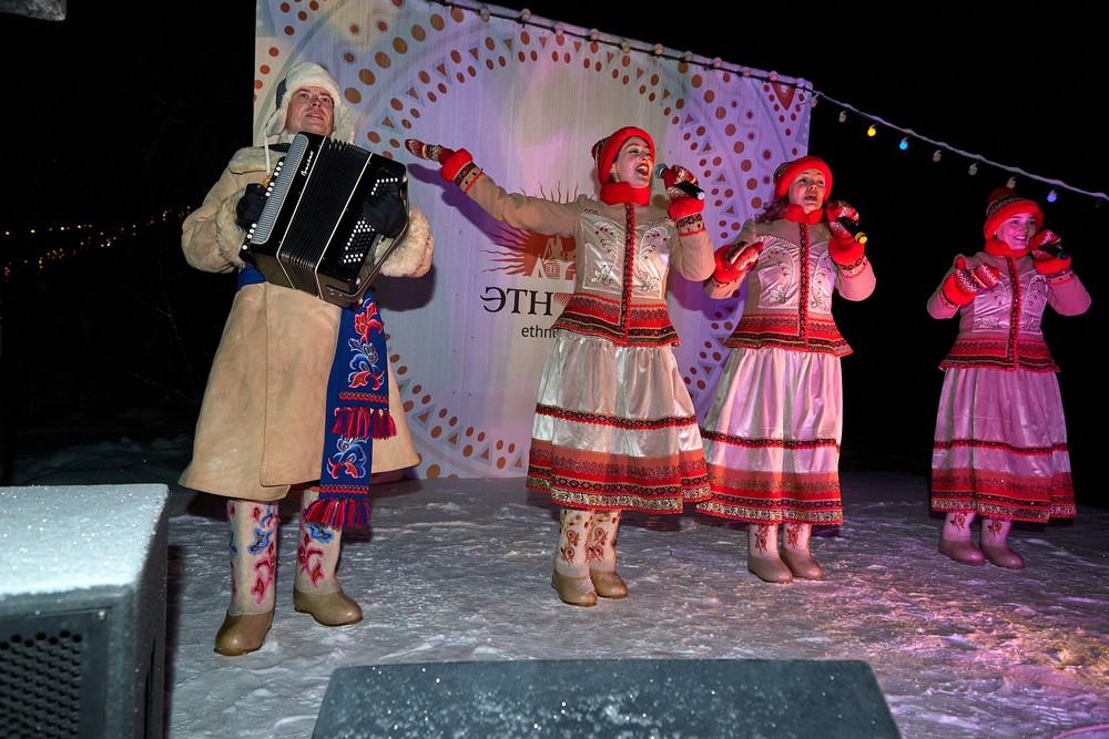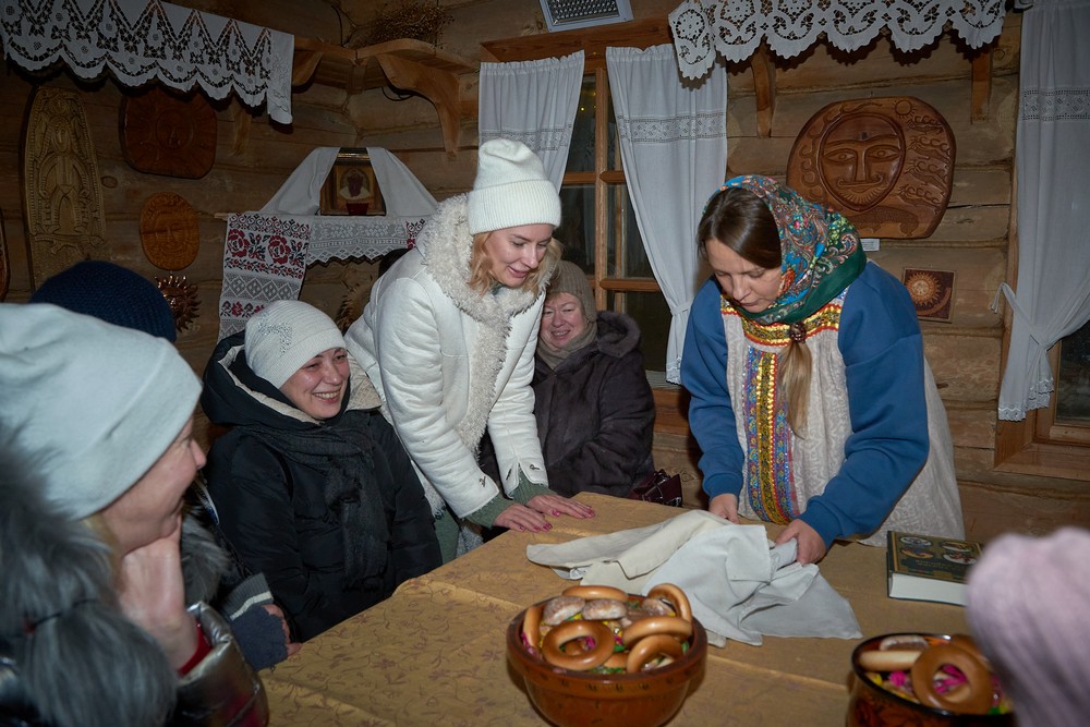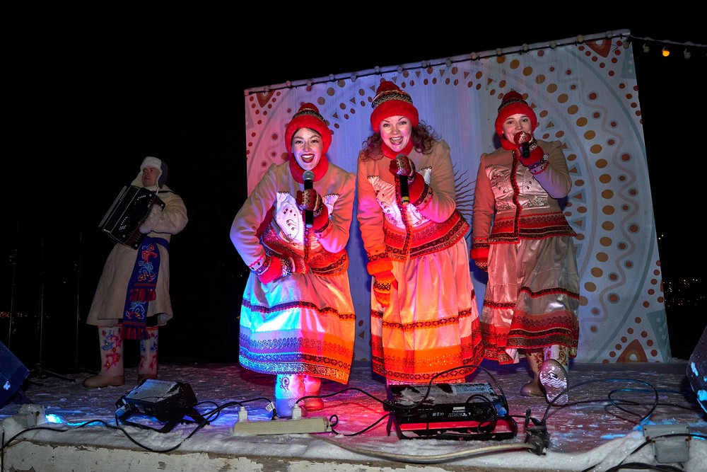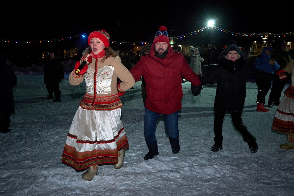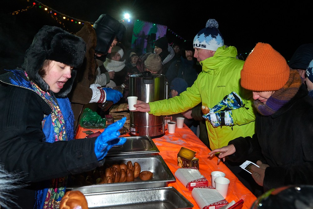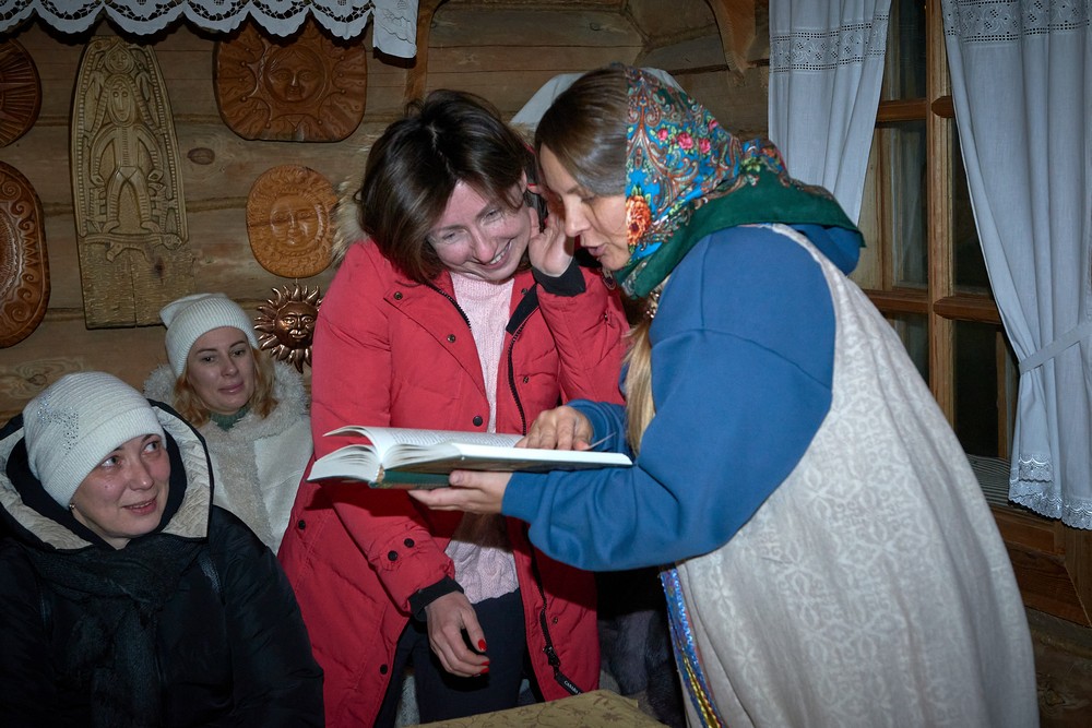 Морозные январские дни начала года не испугали нас и не нарушили наши праздничные планы – вечерние гуляния около печи собрали самых активных гостей этнопарка. В 22:30 на Малой сцене коллектив группы «На все времена» выступил с программой всем хорошо знакомых, заводных, прекрасных песен. Жаркий костёр согрел всех от мала до велика, так что плясать и подпевать артистам было в радость. А после мы отправились в избы – гадать на фасоли и муке, разгадывать восковые узоры, тянуть судьбоносные предметы из валенок, читать неслучайные строки в волшебных книгах и заглядывать в карты. Согрелись и оттаяли, была возможность в сенях потолковать и на печи полежать.