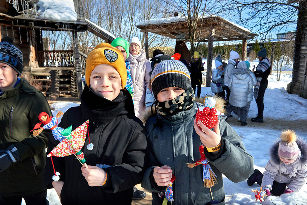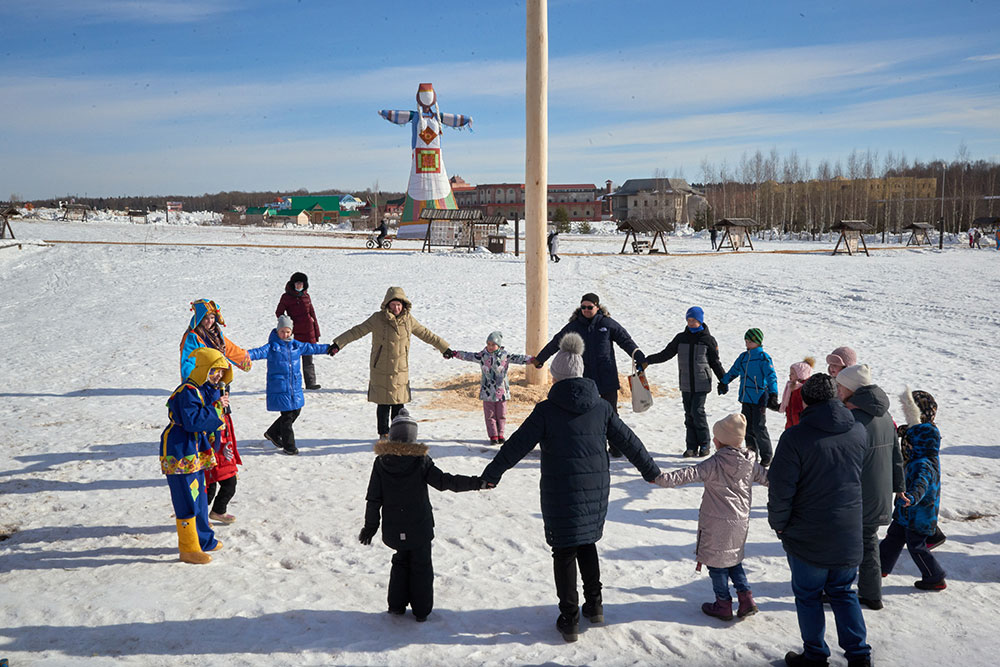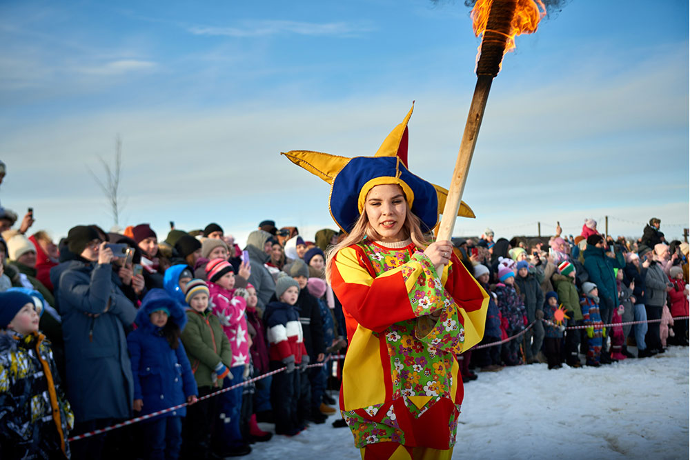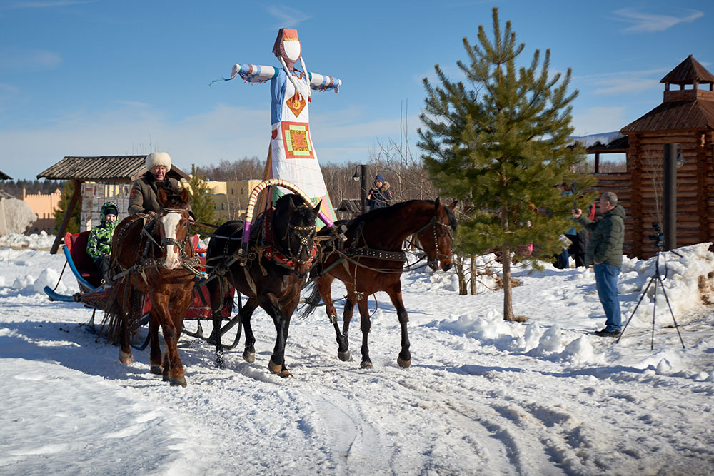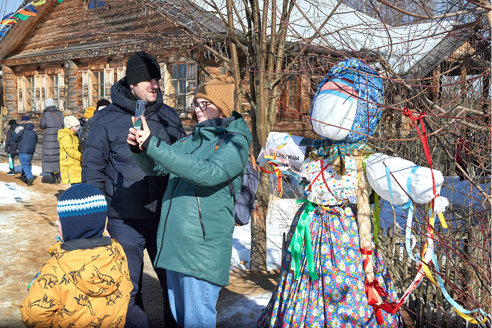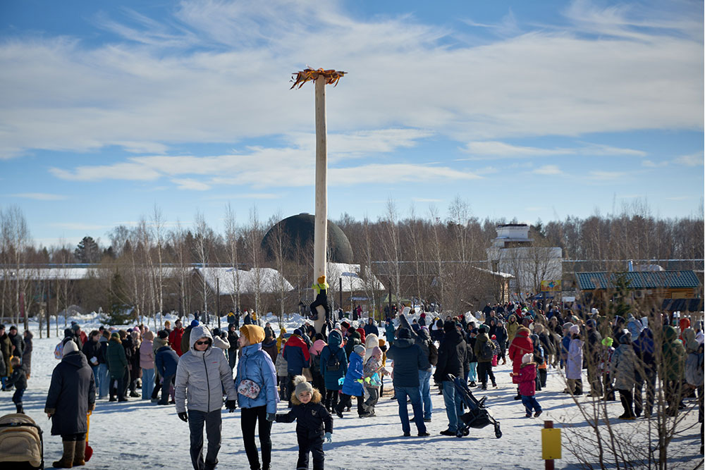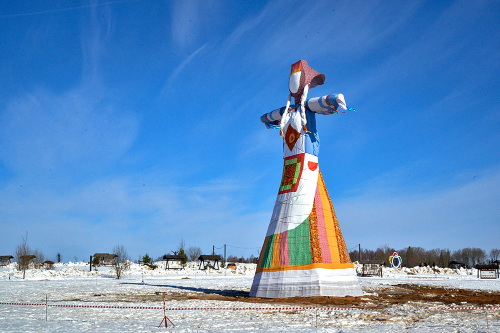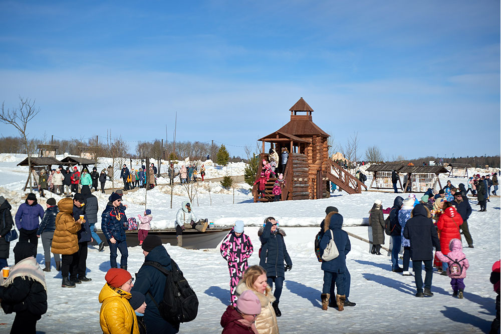 На Широкую Масленицу этнографический парк радушно принимал гостей. Погода благоприятствовала – лёгкий мороз и солнце. В этот мартовский воскресный день, по многовековой традиции, мы развели огонь и сожгли 15-метровое чучело Масленицы, чтобы горело ярче, наполняя миром сердца и души.
