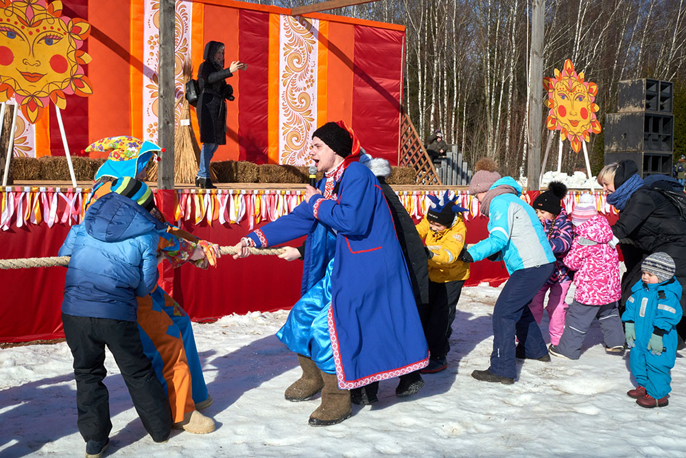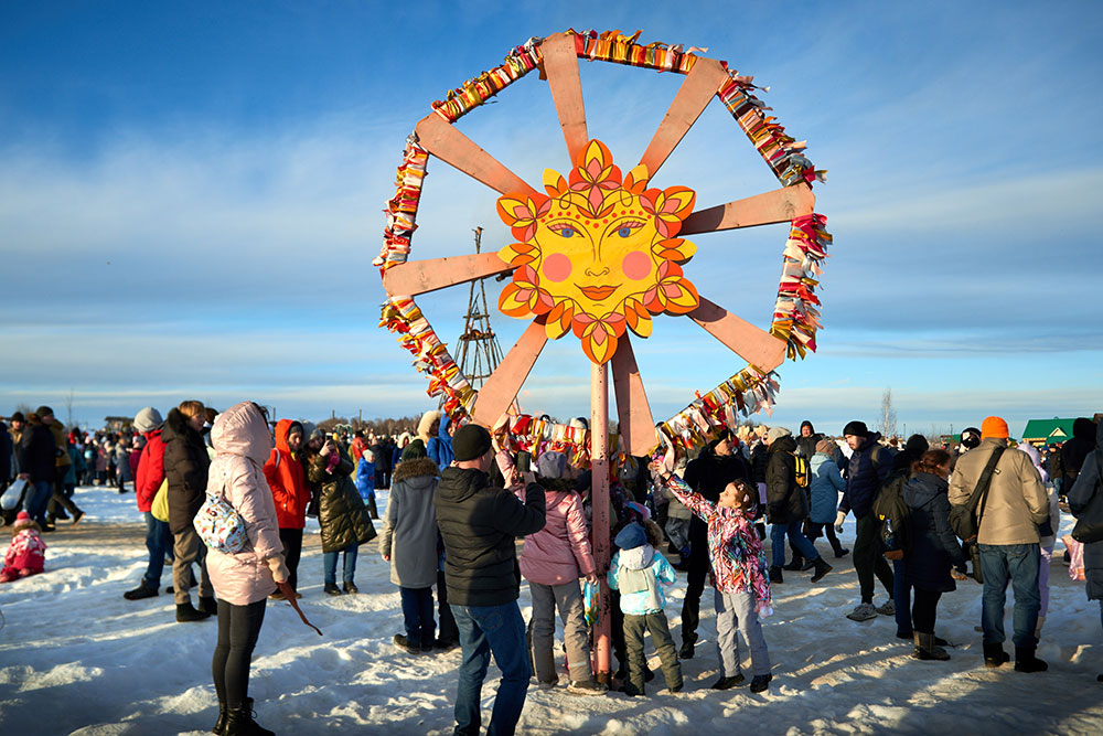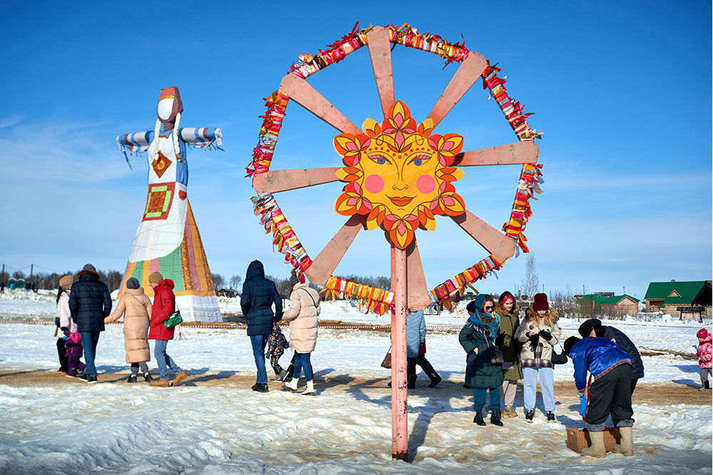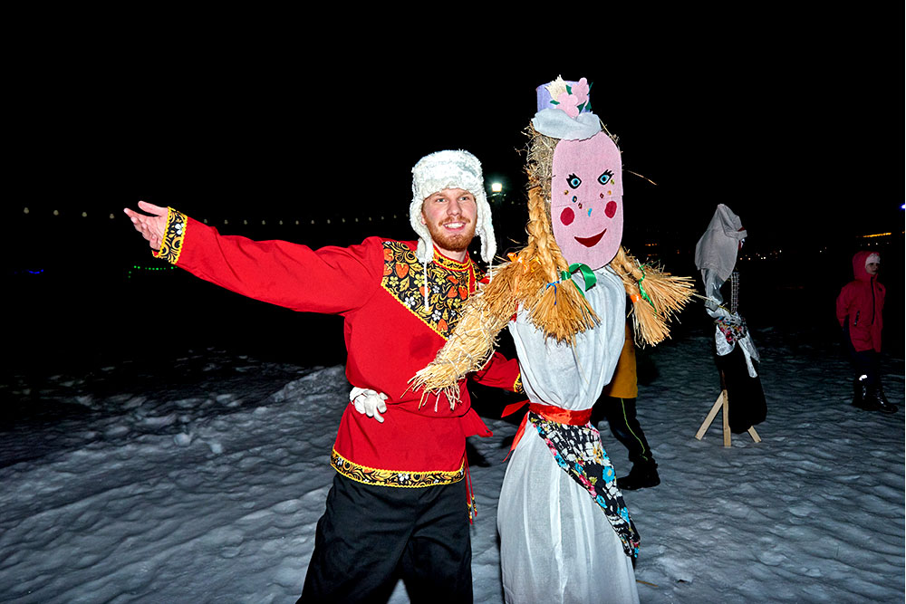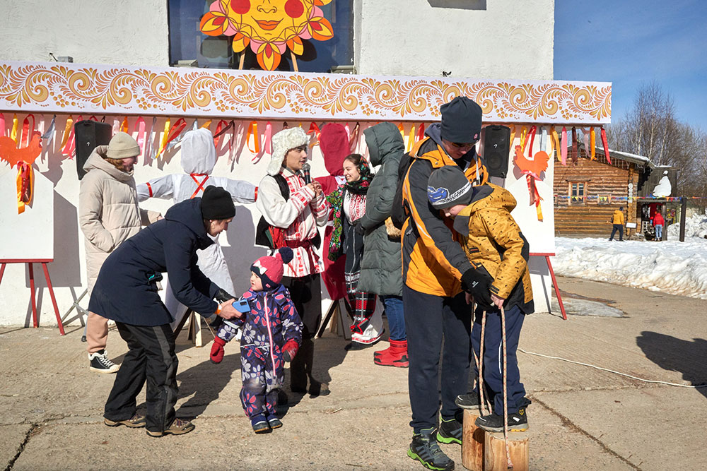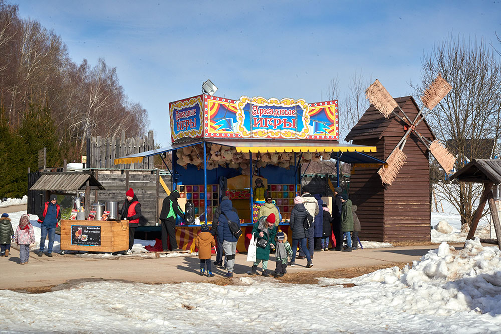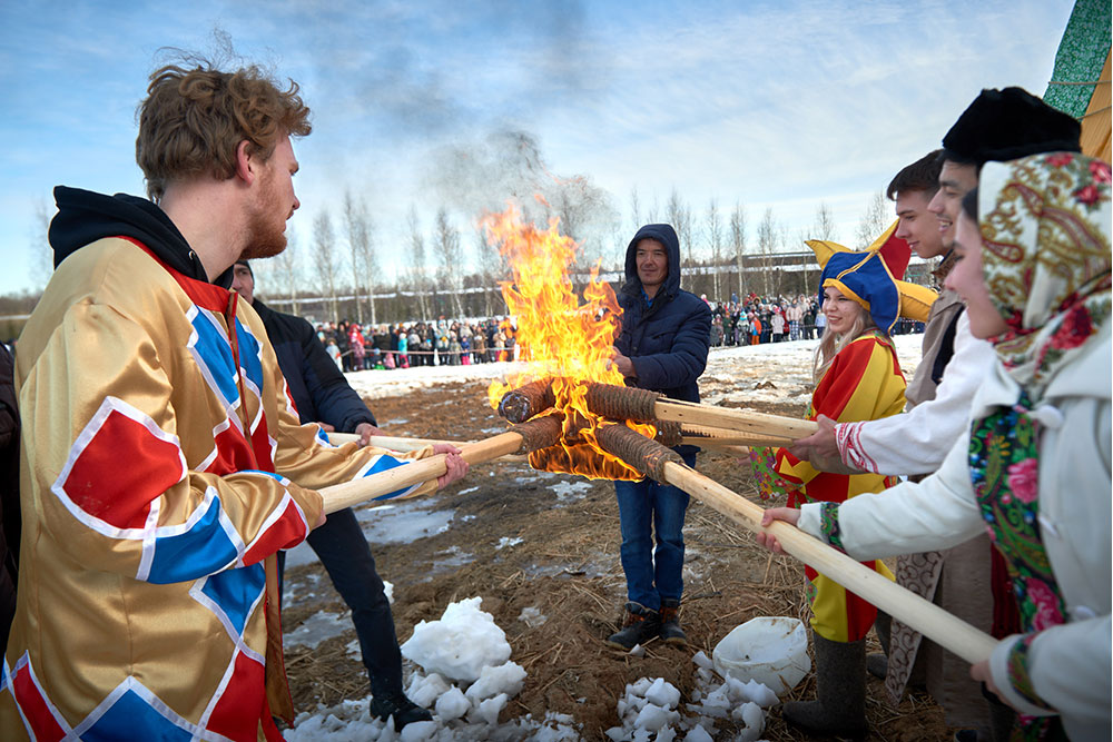 На Широкую Масленицу этнографический парк радушно принимал гостей. Погода благоприятствовала – лёгкий мороз и солнце. В этот мартовский воскресный день, по многовековой традиции, мы развели огонь и сожгли 15-метровое чучело Масленицы, чтобы горело ярче, наполняя миром сердца и души.