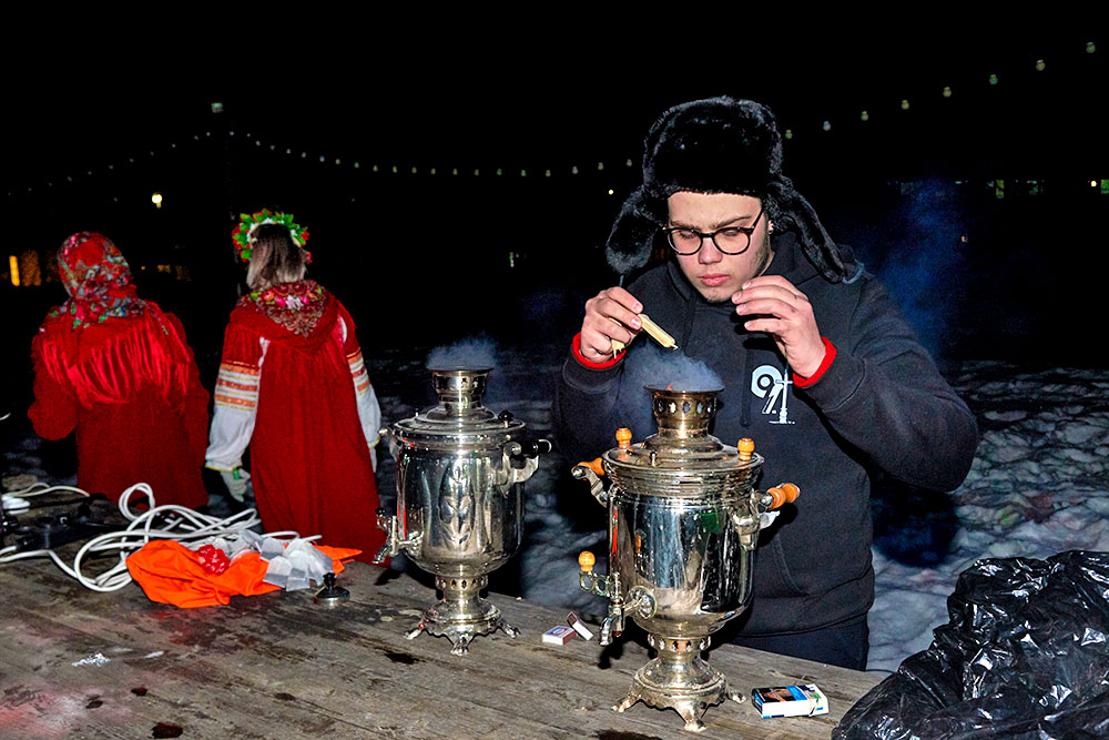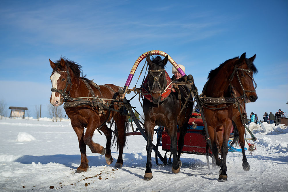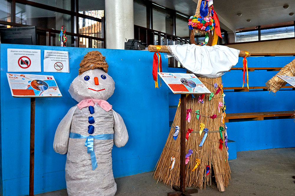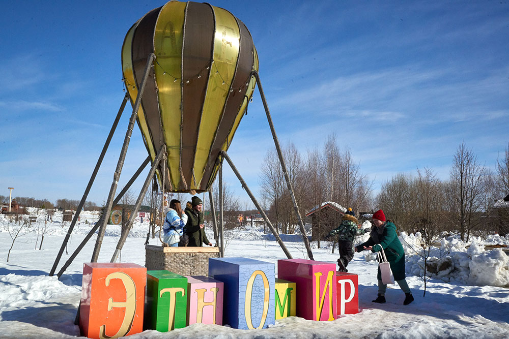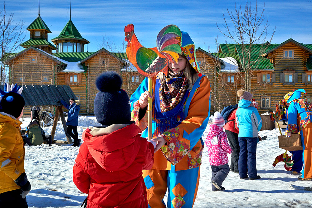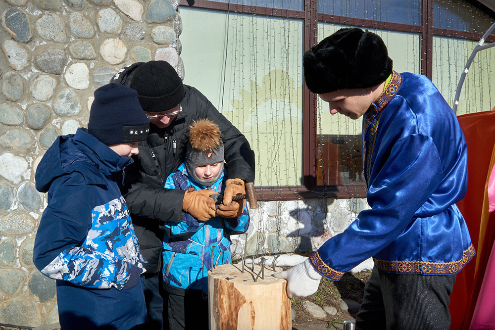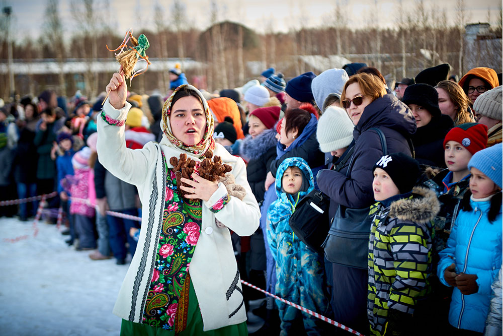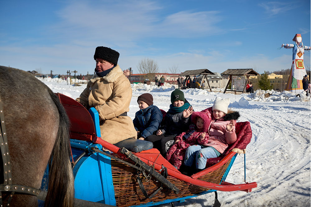 На Широкую Масленицу этнографический парк радушно принимал гостей. Погода благоприятствовала – лёгкий мороз и солнце. В этот мартовский воскресный день, по многовековой традиции, мы развели огонь и сожгли 15-метровое чучело Масленицы, чтобы горело ярче, наполняя миром сердца и души.