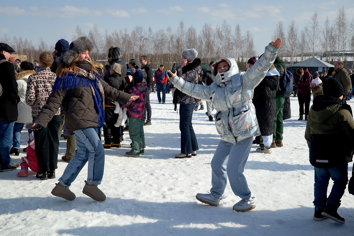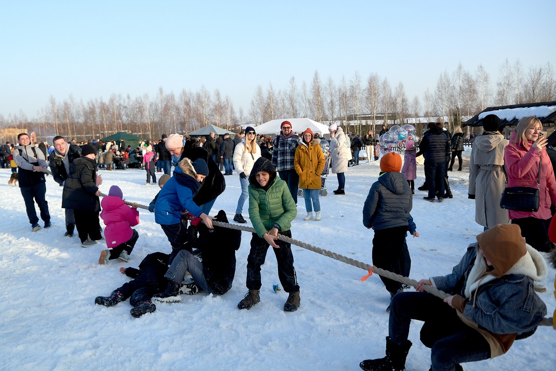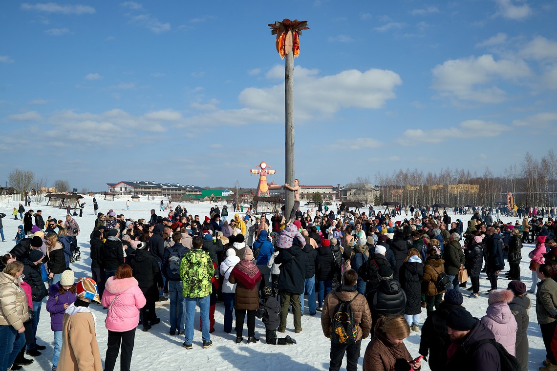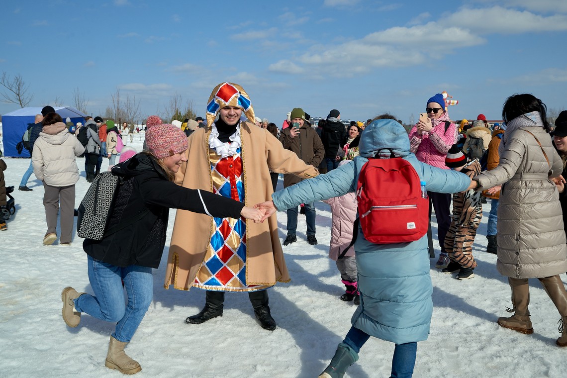 В нашем фотоальбоме – масленичные локации и эмоции гостей, выступление фольклорных коллективов и ярмарочные ряды, попытки и победы участников аттракциона «Ледяной столб», герои народных сказок и детские улыбки!