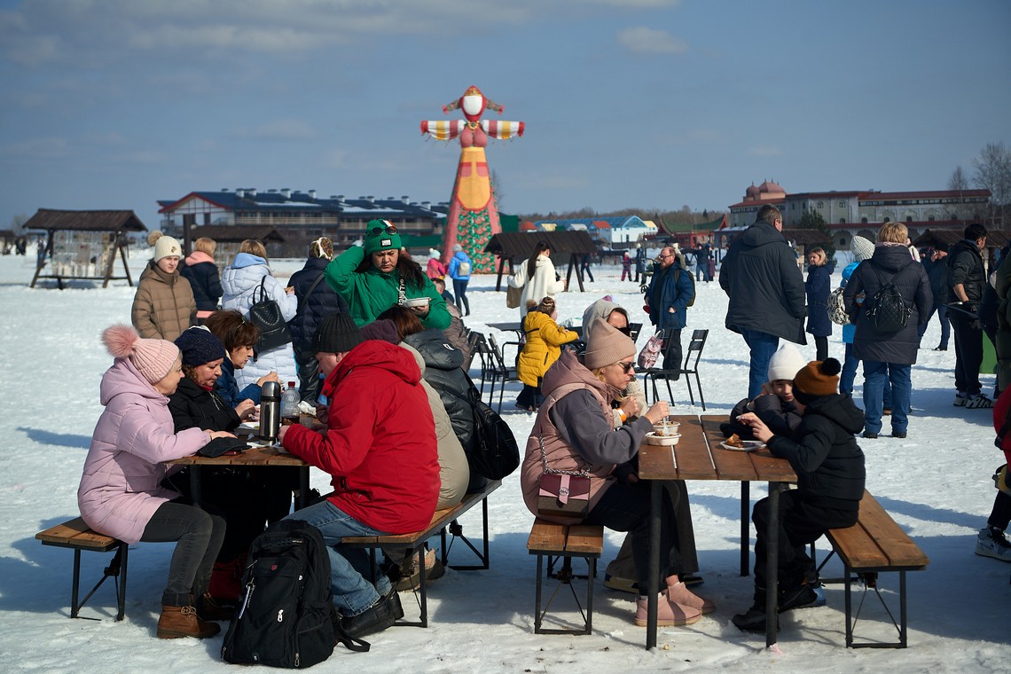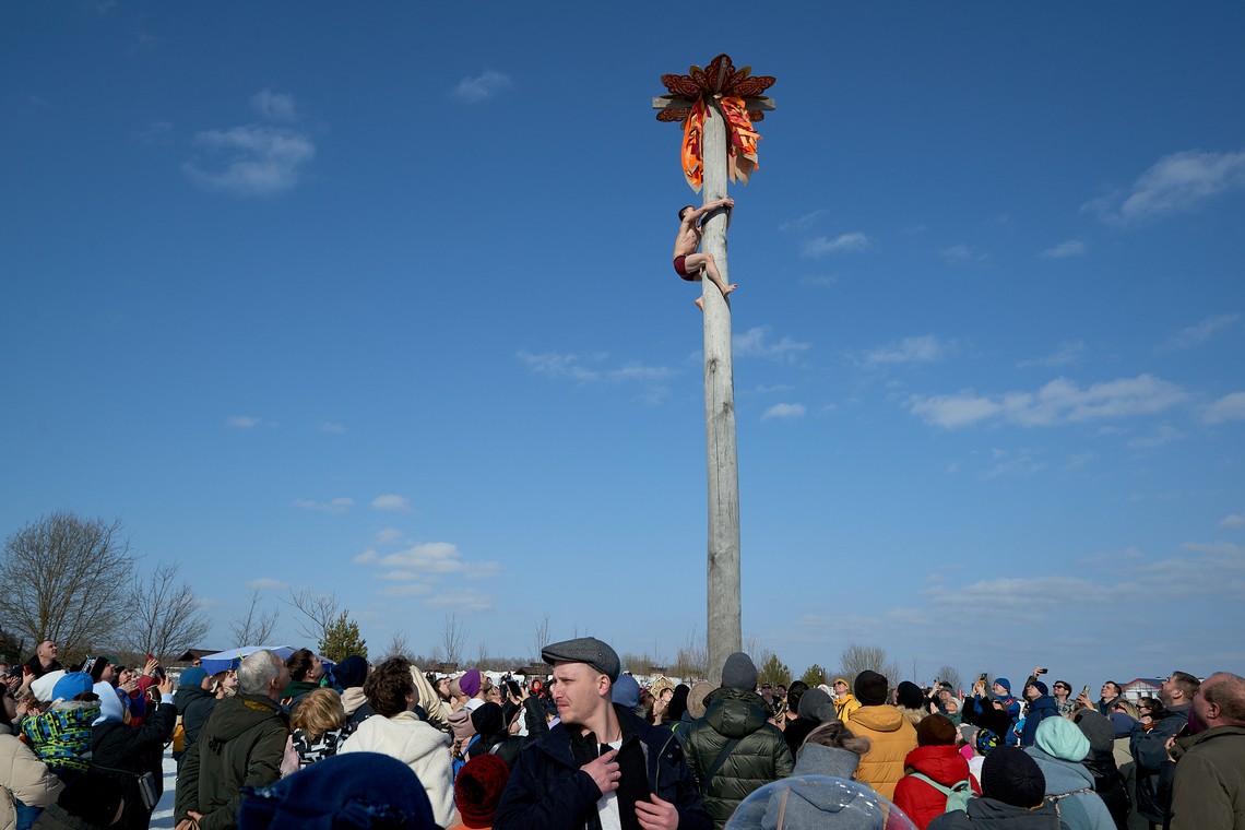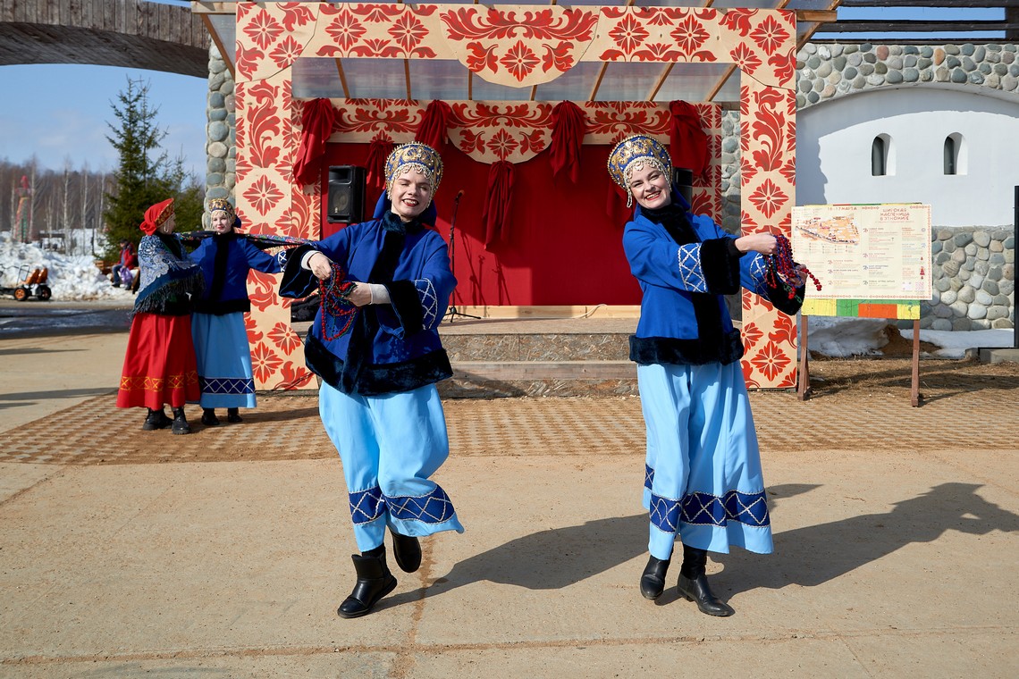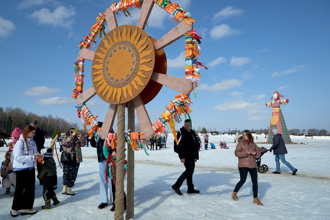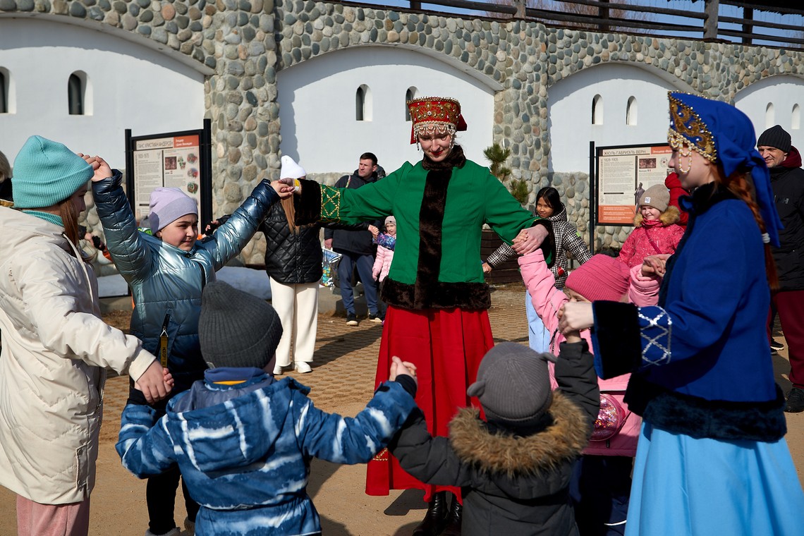 В нашем фотоальбоме – масленичные локации и эмоции гостей, выступление фольклорных коллективов и ярмарочные ряды, попытки и победы участников аттракциона «Ледяной столб», герои народных сказок и детские улыбки!