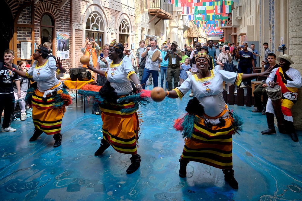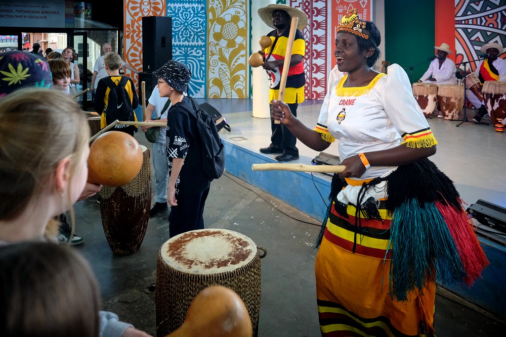 В конце мая во второй раз в ЭТНОМИРе прошла выставка «Уганда Экспо», во время которой производители из восточноафриканского государства представили свою продукцию гостям парка. Ярмарка-продажа сопровождалась дегустациями, мастер-классами, выступлениями артистов. Посетители в эти дни смогли познакомиться с аутентичной культурой африканской страны, угоститься угандийским кофе и чаем, примерить национальную африканскую одежду, попробовать сыграть на барабанах и насладиться концертными номерами от творческого коллектива The Сrane Performers.