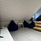 Возле дома: оборудованное мангальное место (стол, мангал, шезлонги, стулья и стол на терассе).