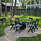 Возле дома: оборудованное мангальное место (стол, мангал, шезлонги, стулья и стол на терассе).