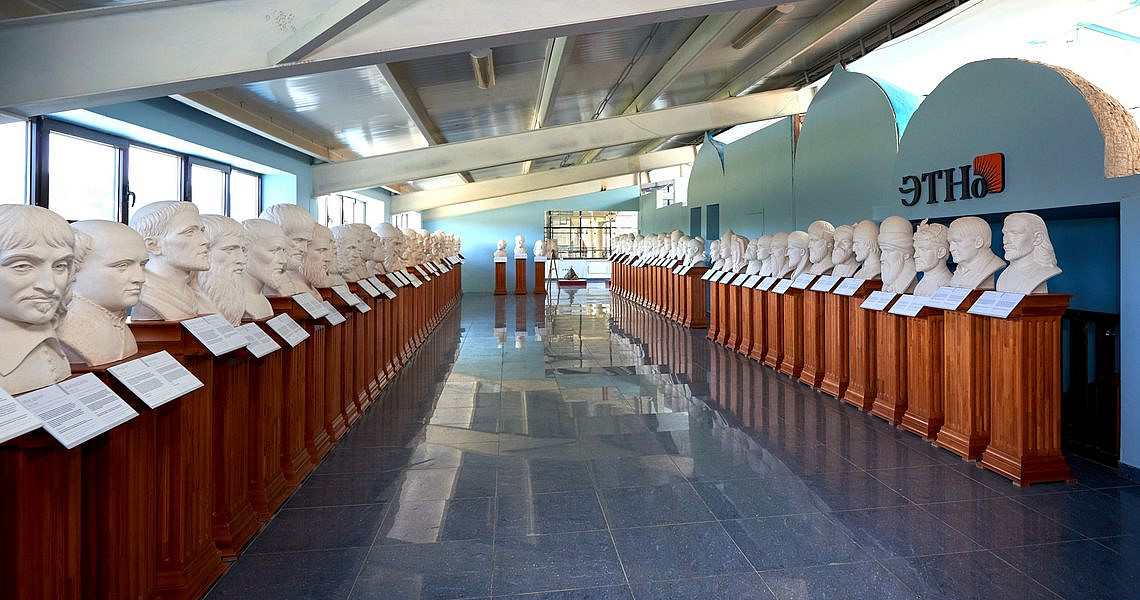 Экспозиция включает в себя свыше 100 экспонатов. Скульптор Алексей Леонов запечатлел в белоснежных гипсовых бюстах образы основателей мировых религий, философов, ученых, известных писателей и поэтов. Его искусство уникально: оно представляет зрителю культуру глазами художника ХХІ века, в котором информационное пространство, являясь основой, носит общемировой характер.