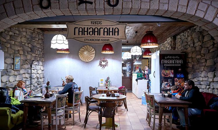 В интерьере кафе – винтажная мебель, мягкие диваны, деревянные столы. Под звуки пандури и аппетитные запахи, за трапезой в кафе «Гандагана» совсем не сложно почувствовать себя в гостеприимной Грузии.
