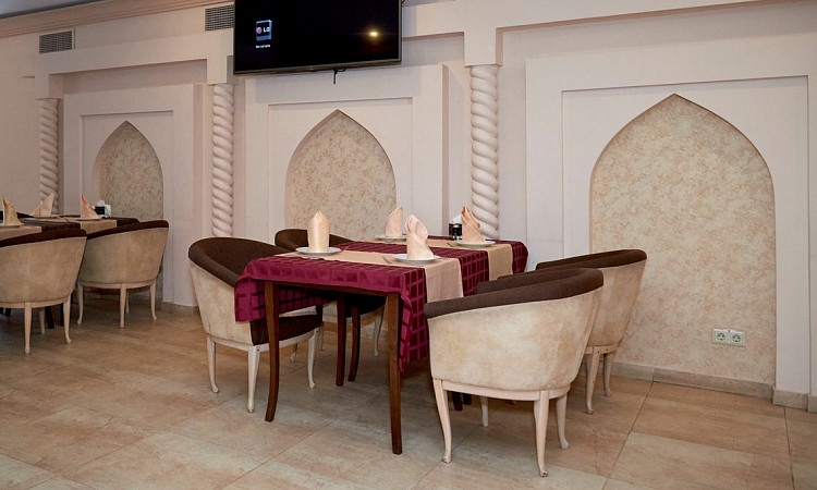 Завершённый вид атмосфере придаст сервировка – все блюда подаются на традиционной расписной посуде, изготовленной руками восточных мастеров. Чай дорогим гостям наливают в изящные пиалы, чтобы за неспешной беседой можно было насладиться вкусом и проникнуться восточными традициями.